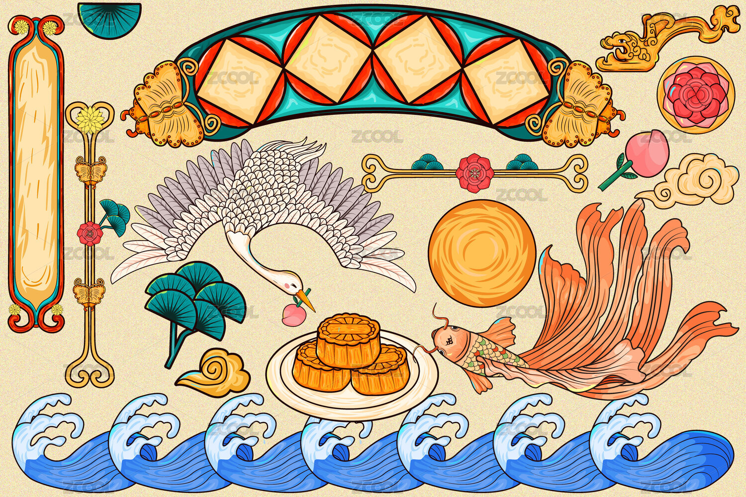 中秋节贺礼包装设计矢量分层素材国潮插画