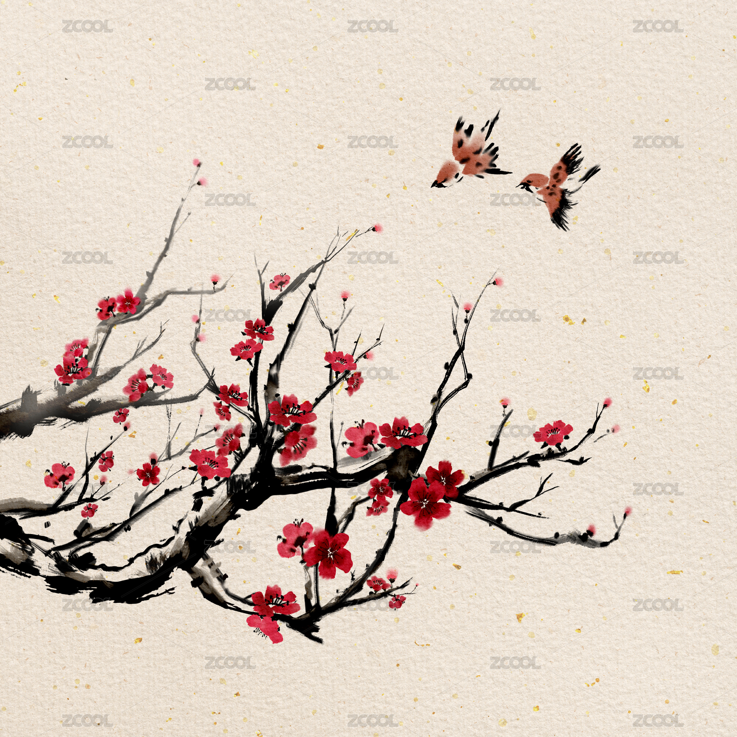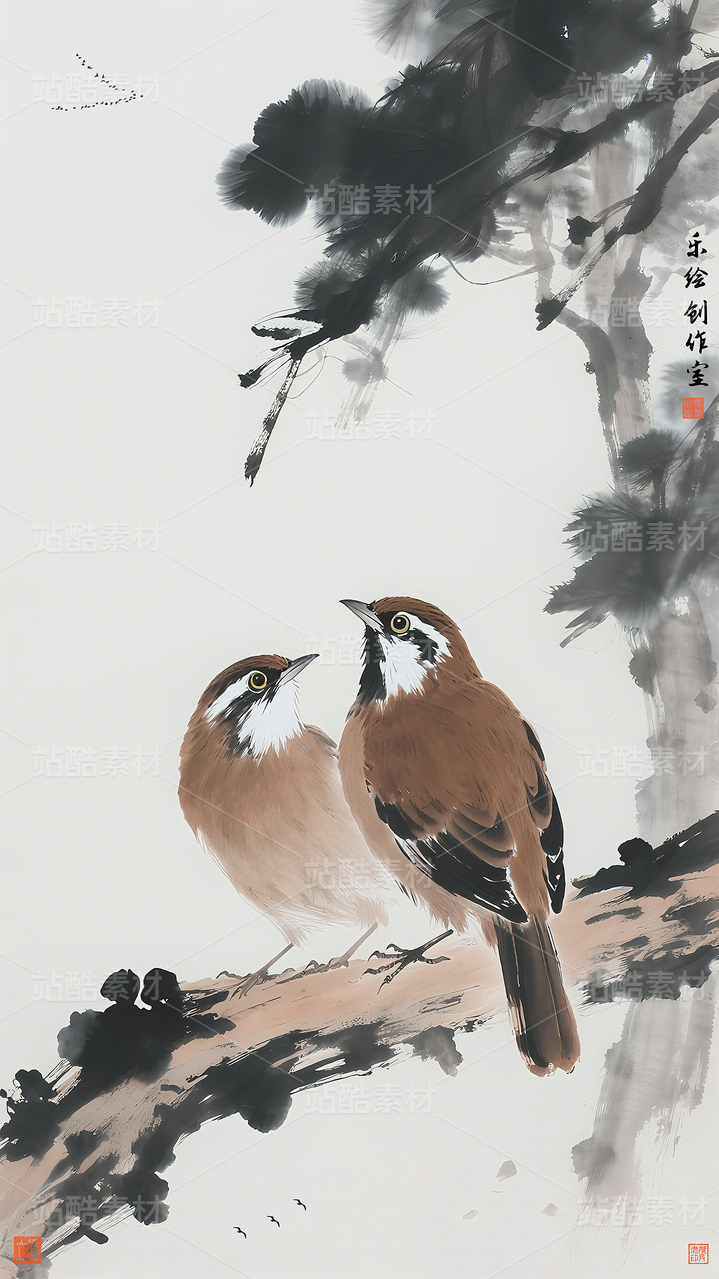 中式装饰画 花鸟装饰图 水墨花鸟装饰画 水墨画鸟
