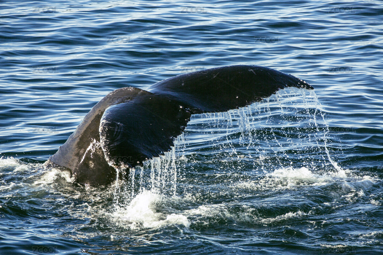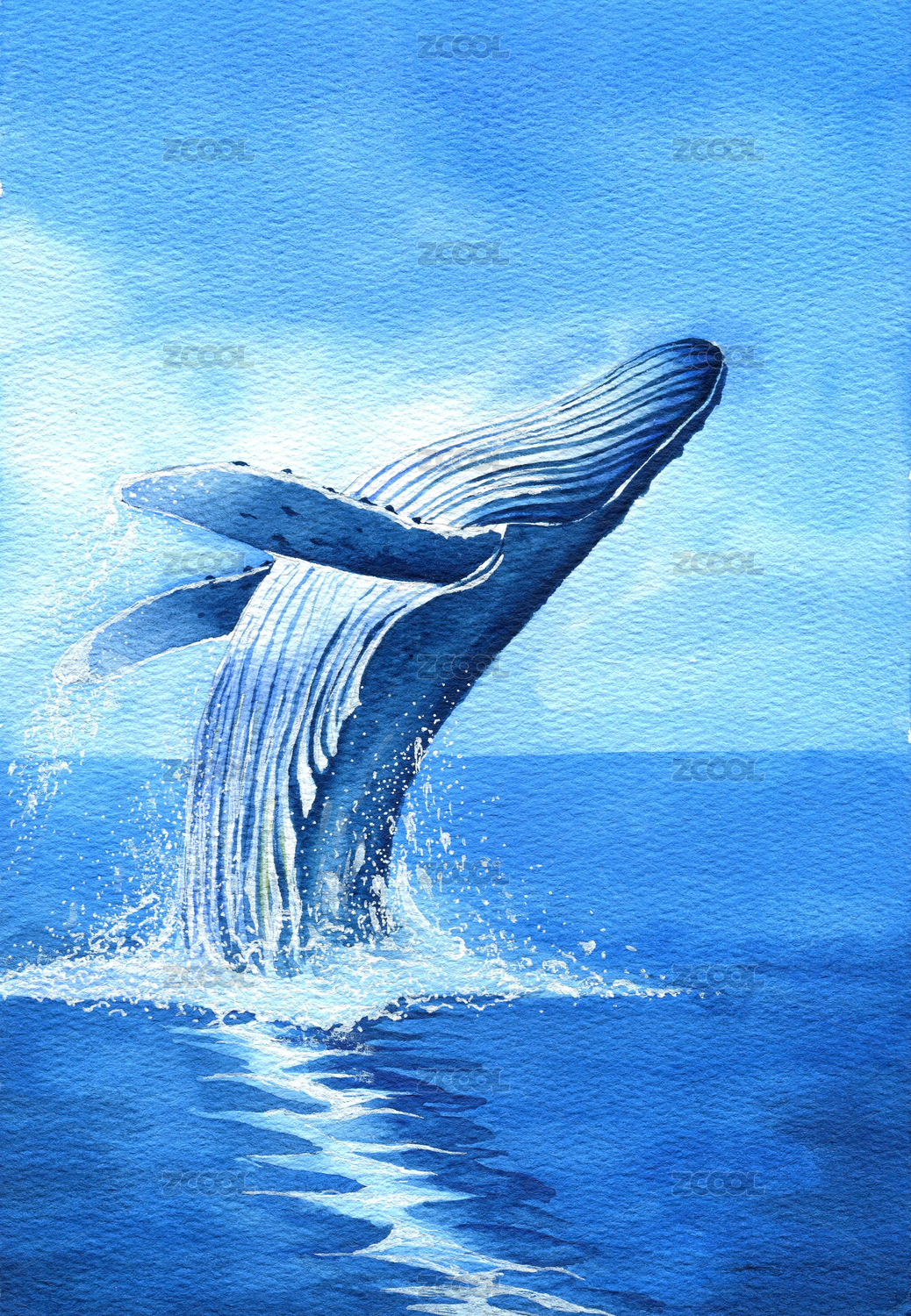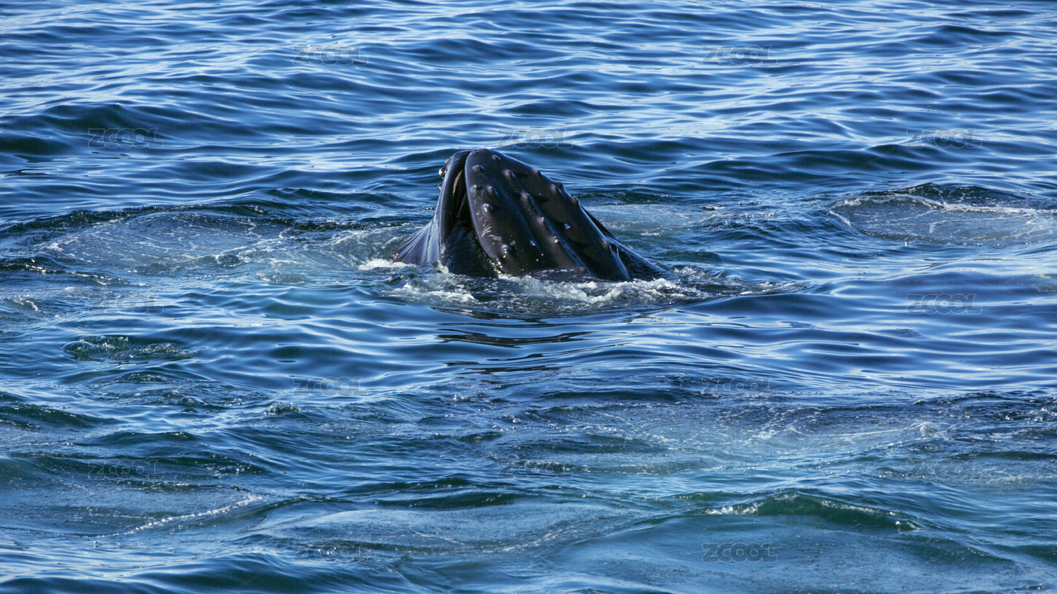 在深蓝色的海洋畅游庞然大物鲸鱼