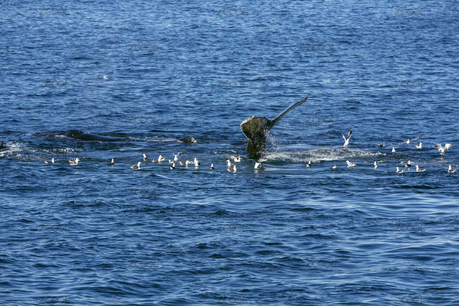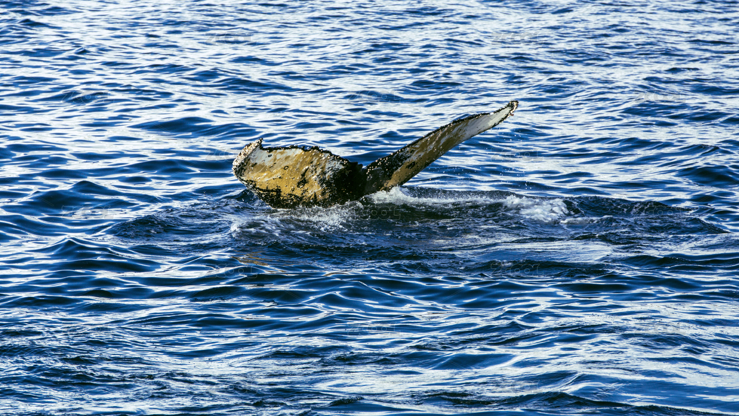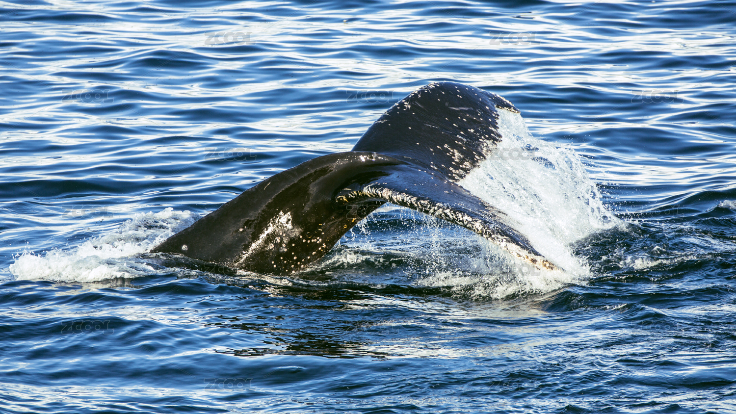 在深蓝色的海洋畅游庞然大物鲸鱼