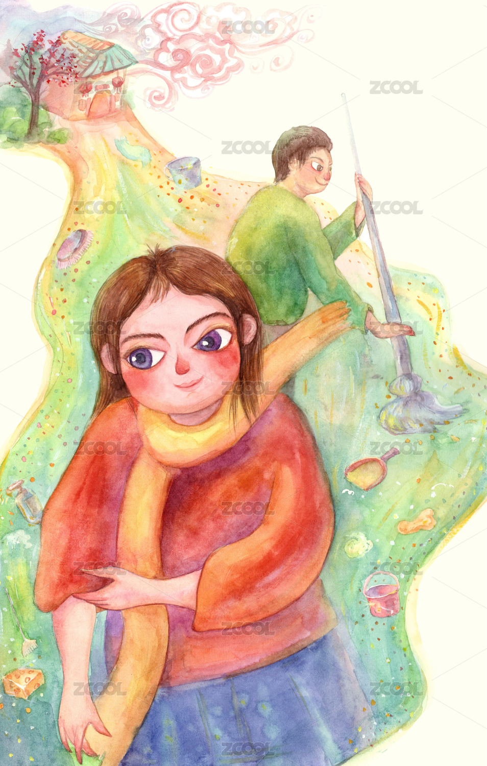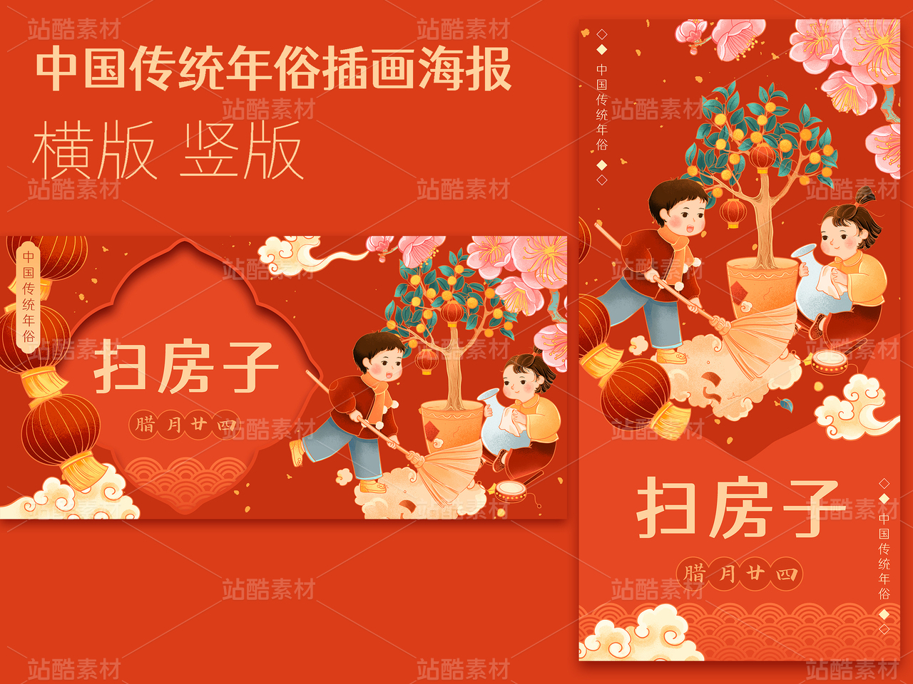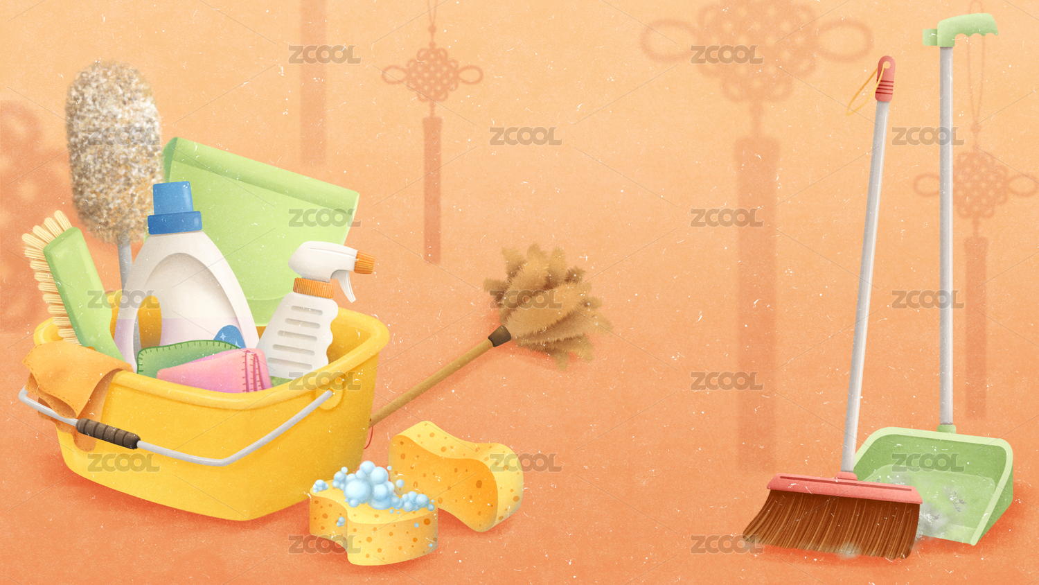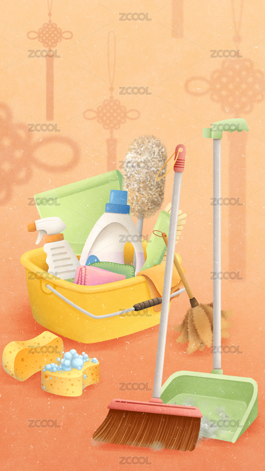 2019猪年新年春节过年年俗 腊月二十四 打扫卫生 插画