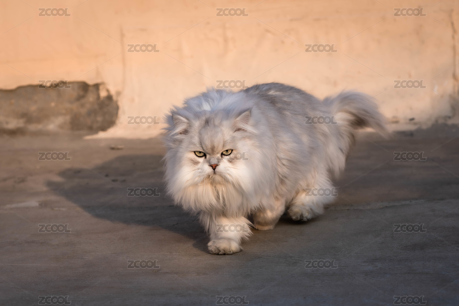 天台上行走的翻白眼的金吉拉长毛猫