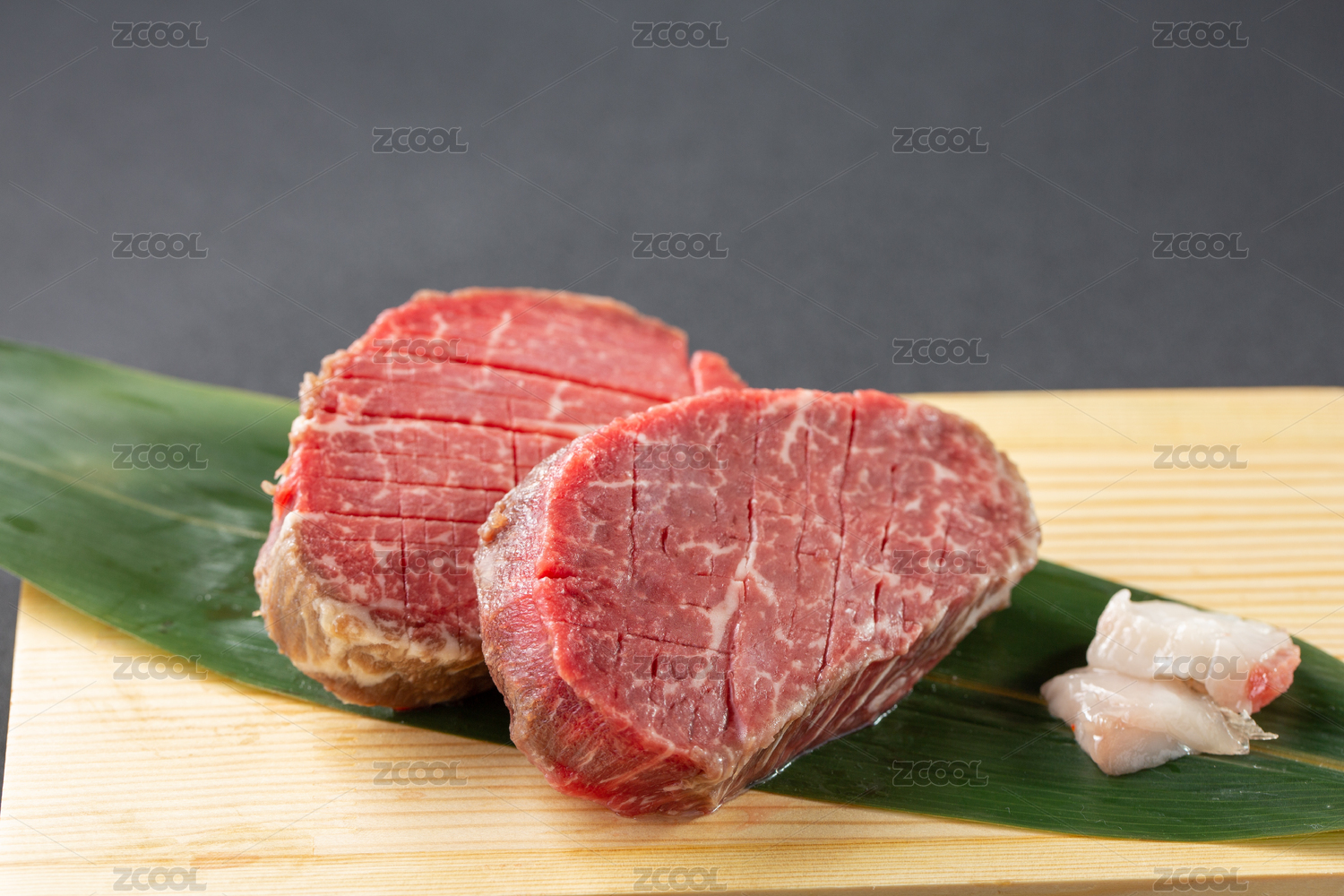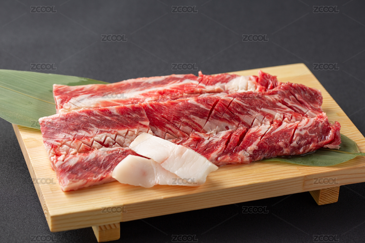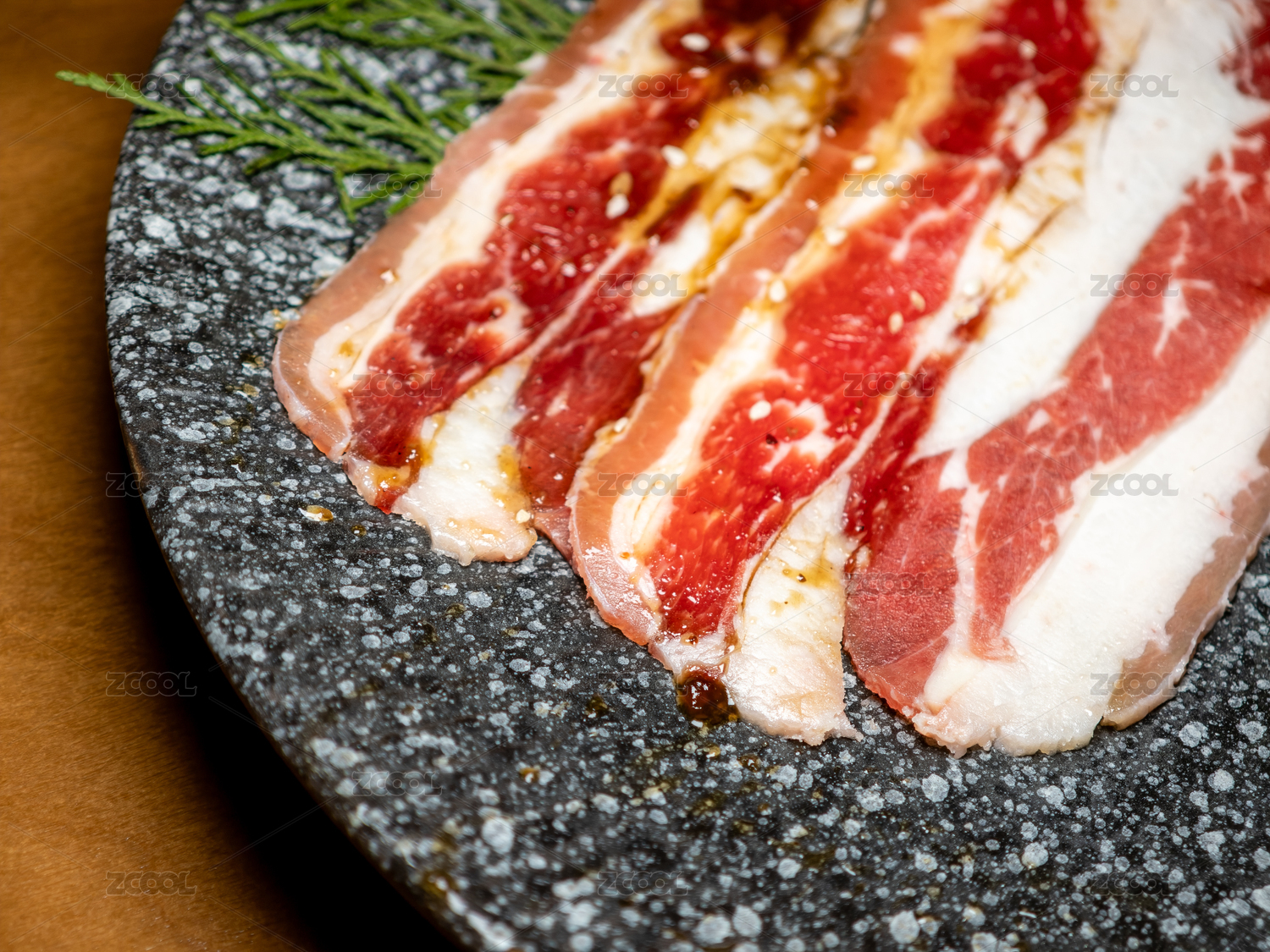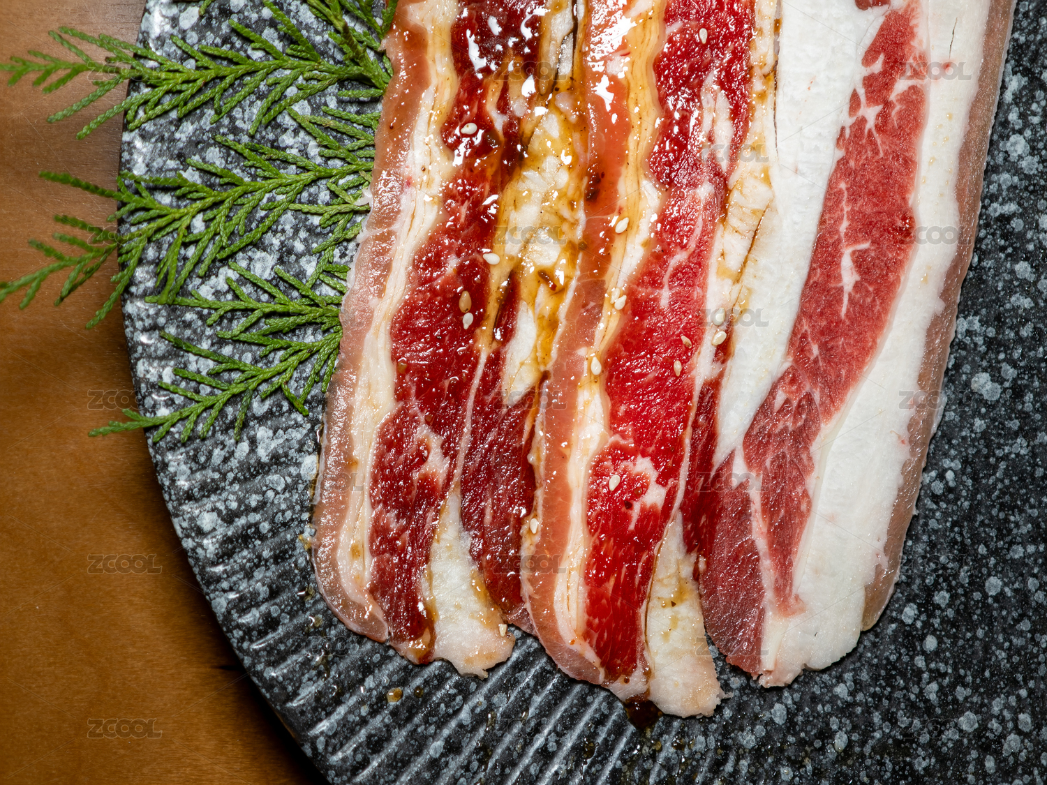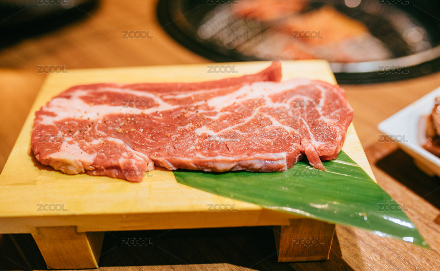 日式烧肉餐厅盘装腌制新鲜雪花肥牛特写