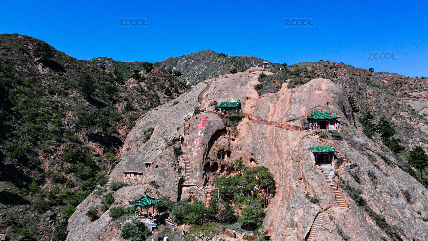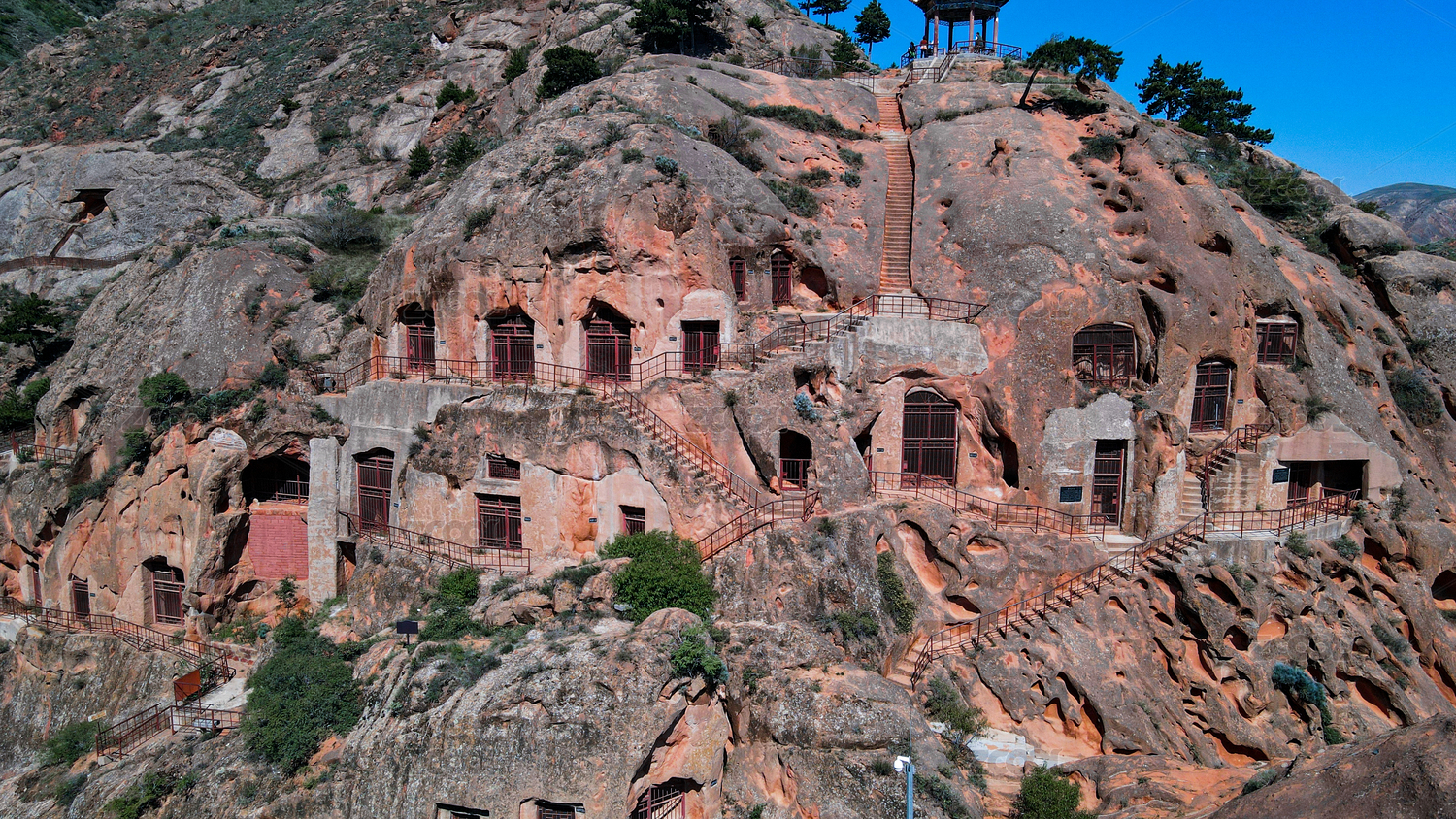 中国宁夏西吉须弥山石窟丹霞地貌