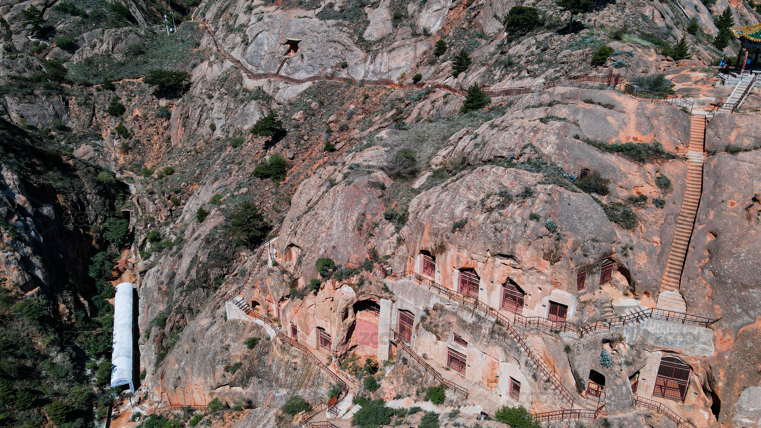 中国宁夏自治区固原市原州区须弥山的岩石峭壁
