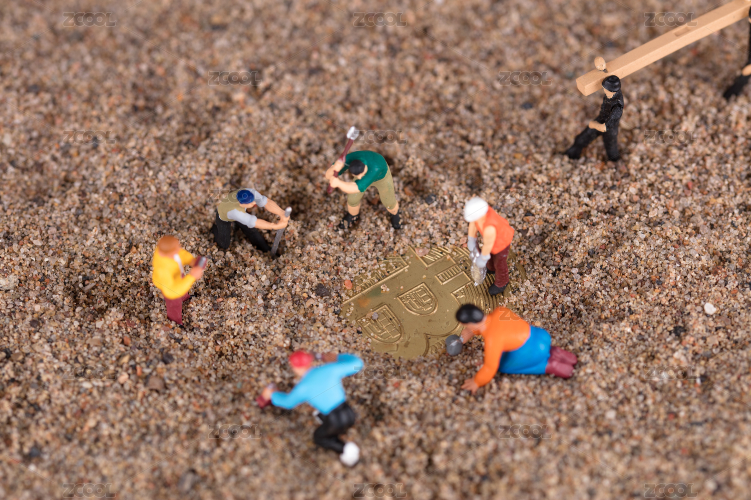 微缩工人在沙漠里发掘比特币