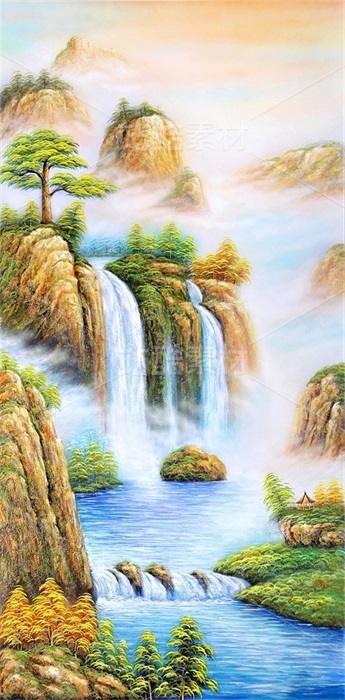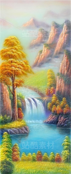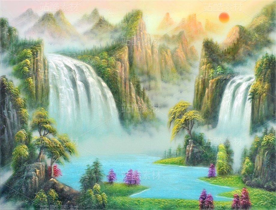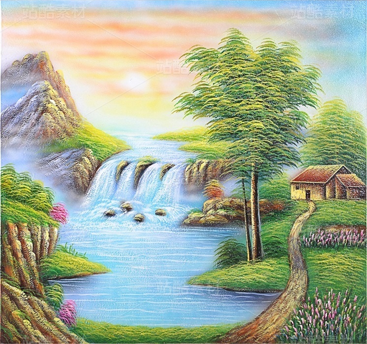 大象风景动物油画世界油画风景油画印象派油画非洲草原