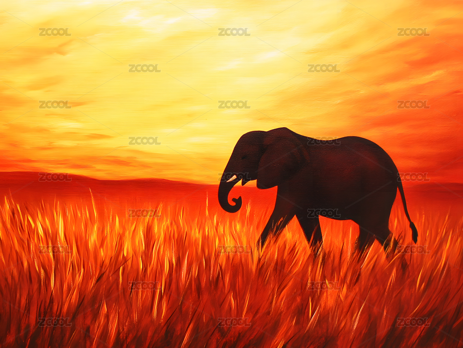 非洲草原大象风景动物油画世界油画风景油画印象派油画