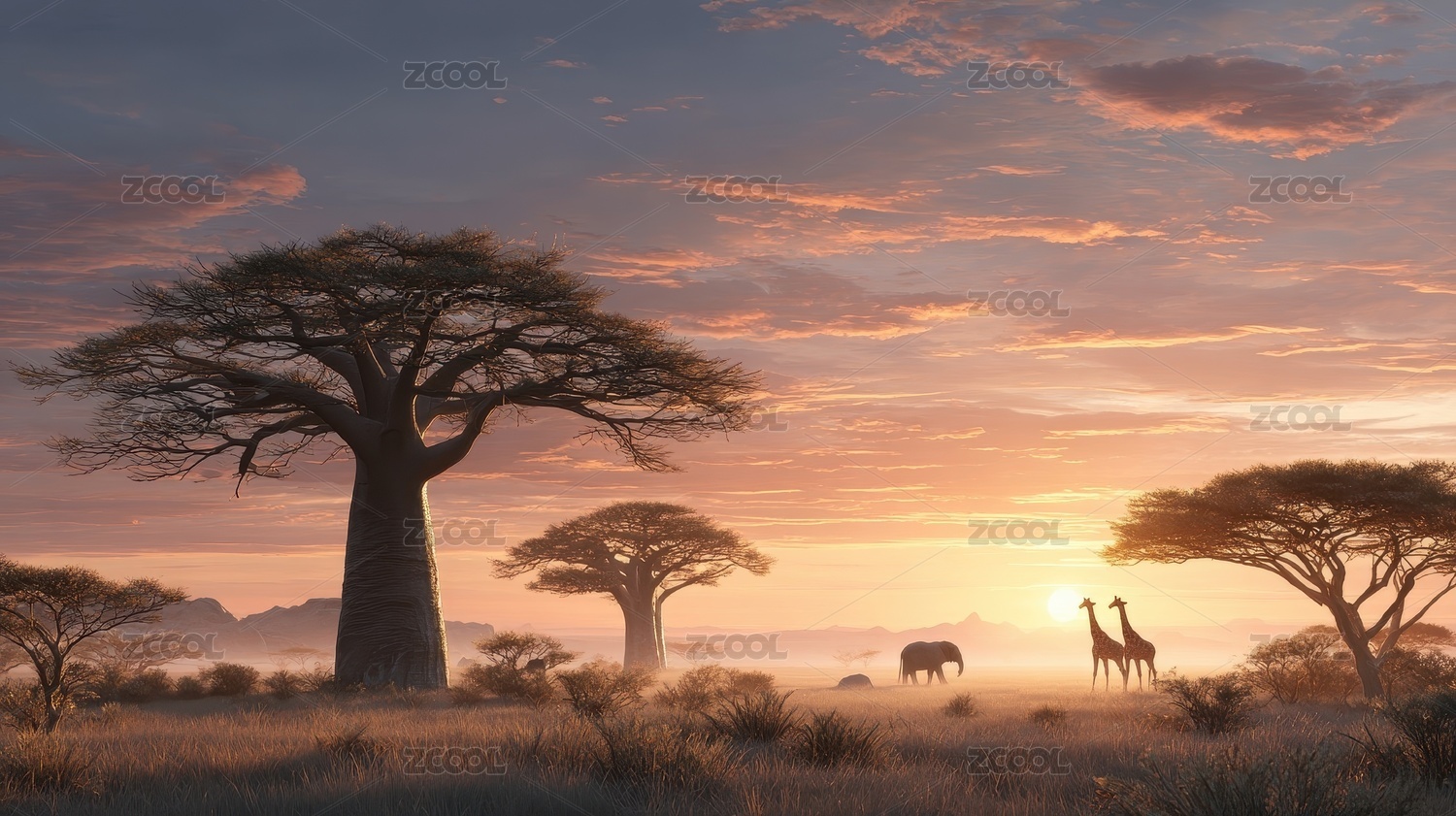 非洲草原风景动物油画油画风景油画印象派油画世界名画