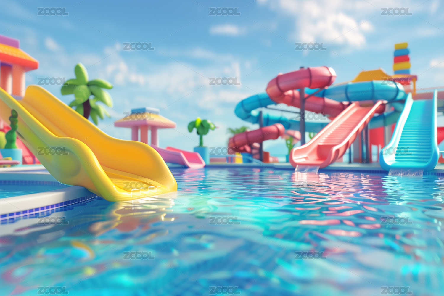 3D卡通蓝色清凉感儿童水上乐园夏天消夏