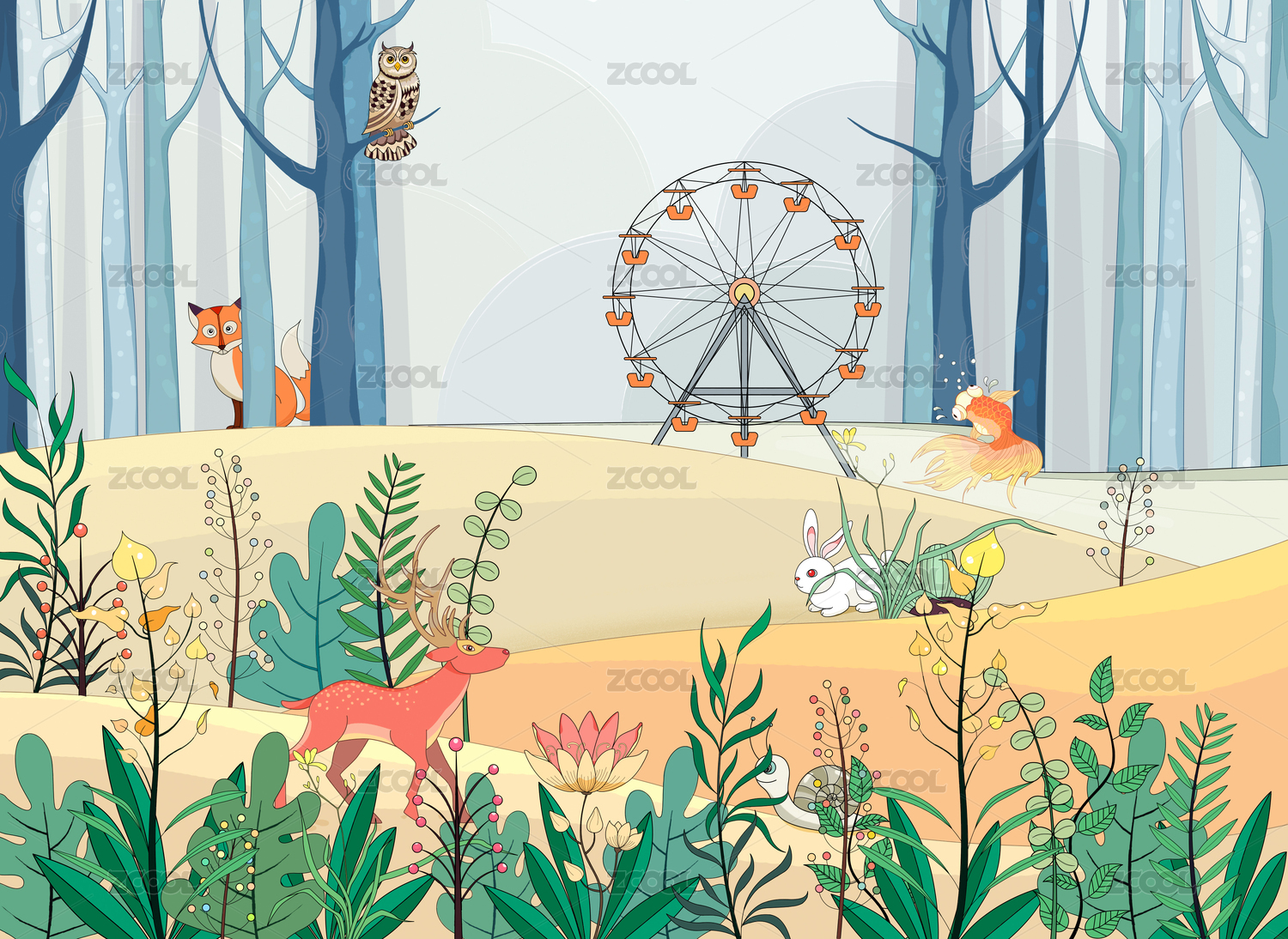 卡通儿童游乐园咖啡店购物玩耍扁平化插画