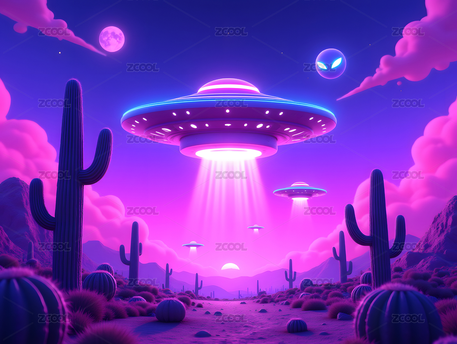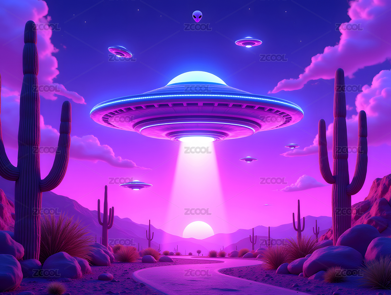 宇航员与UFO飞碟3D插图一起飞行blend模型