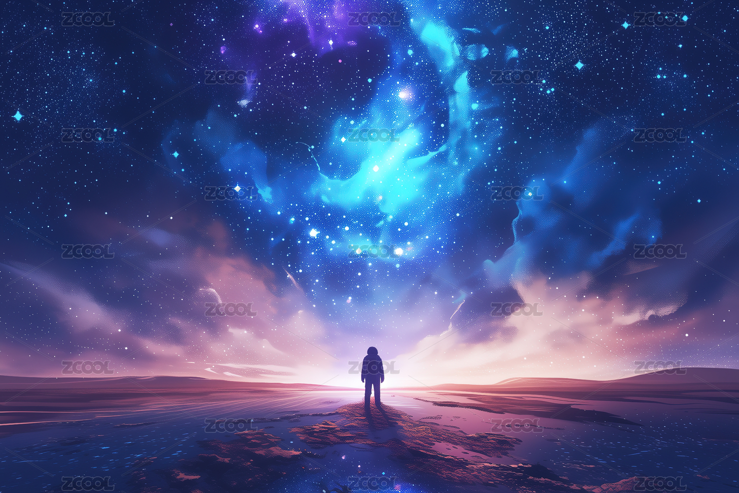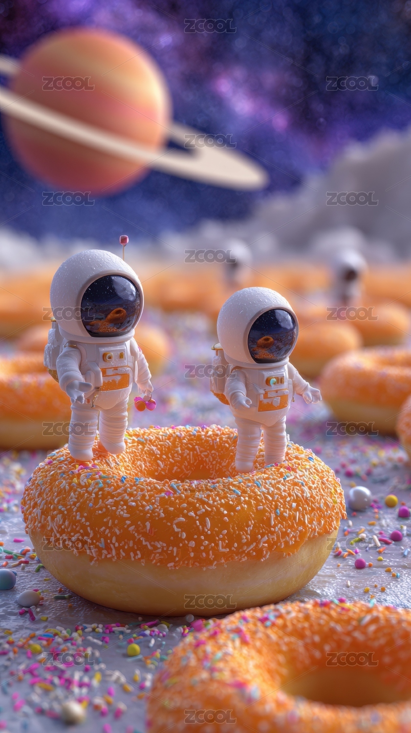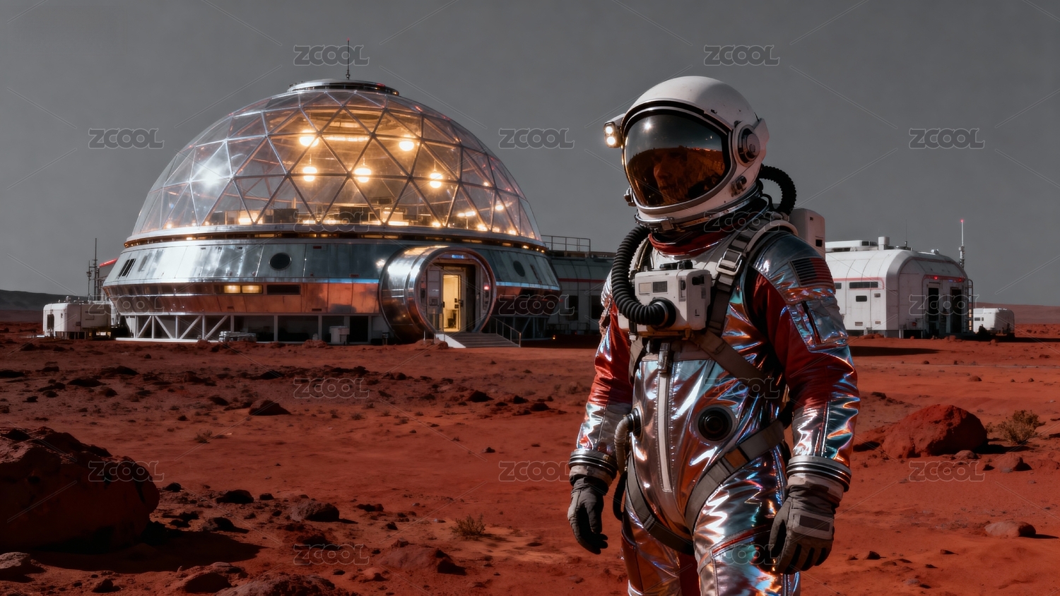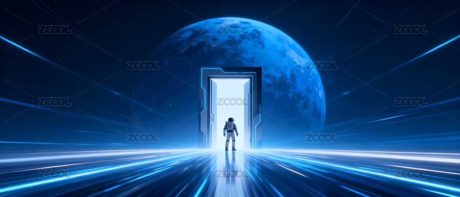 卡通宇航员站在月饼小房子红旗云朵3D插画