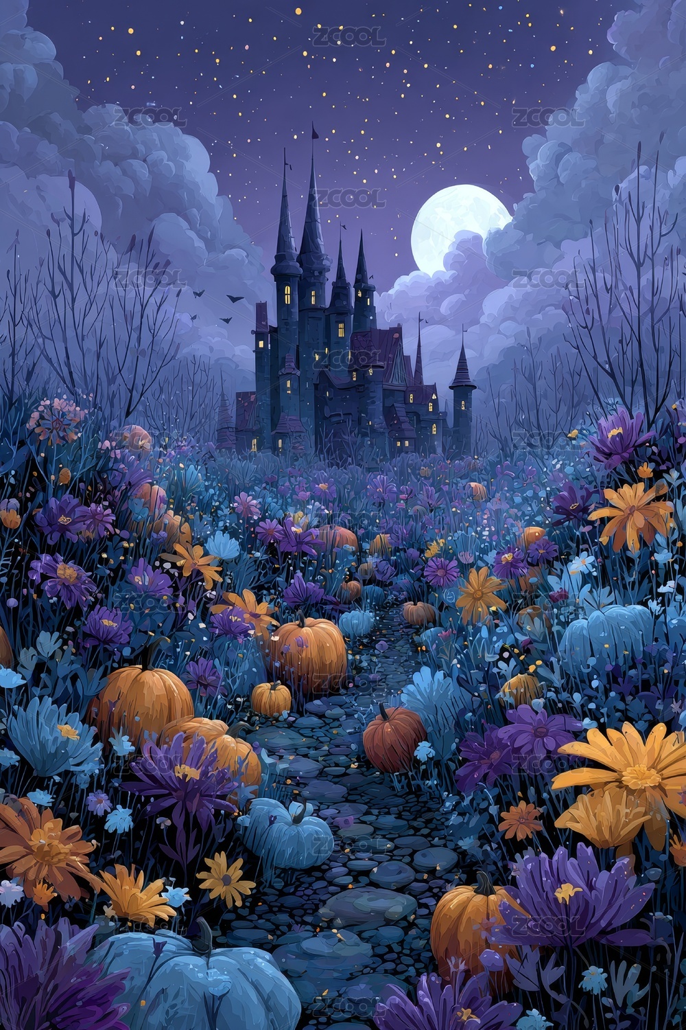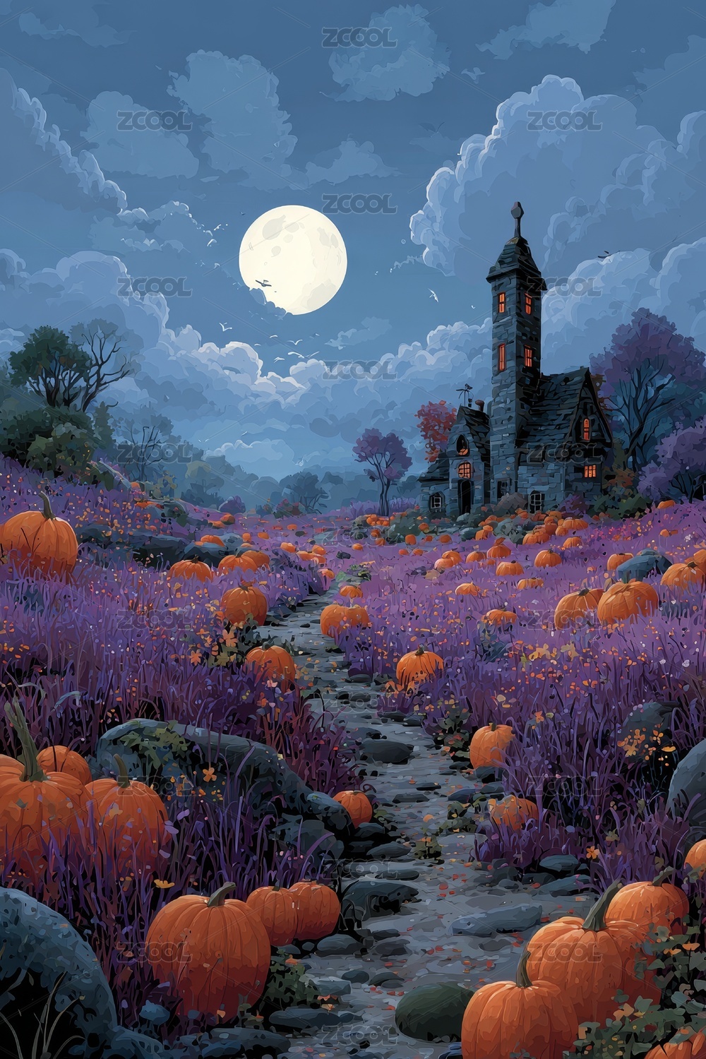 十二生肖之南瓜田里的小老鼠可爱小场景插画