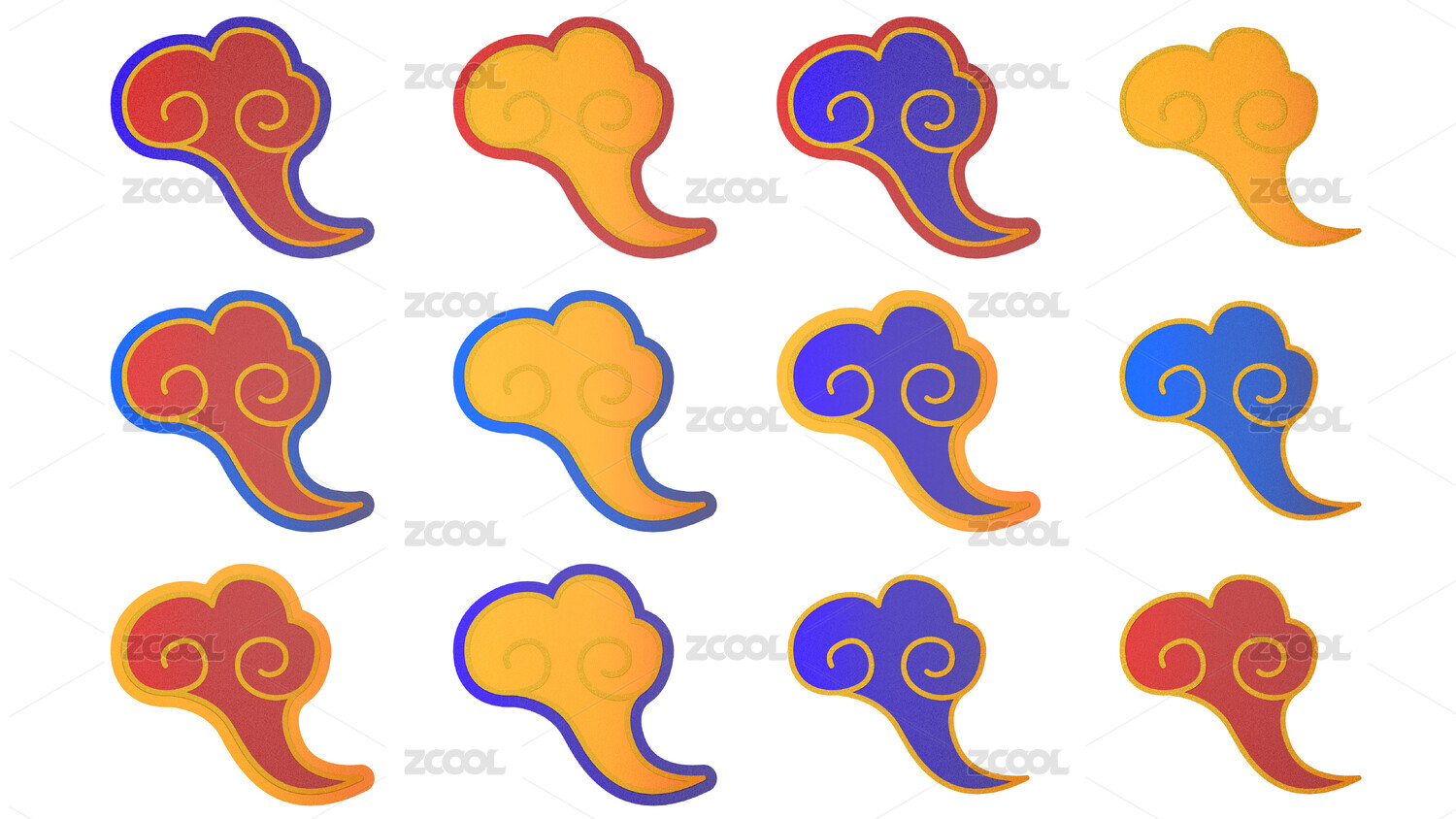 多色中国风微立体祥云装饰