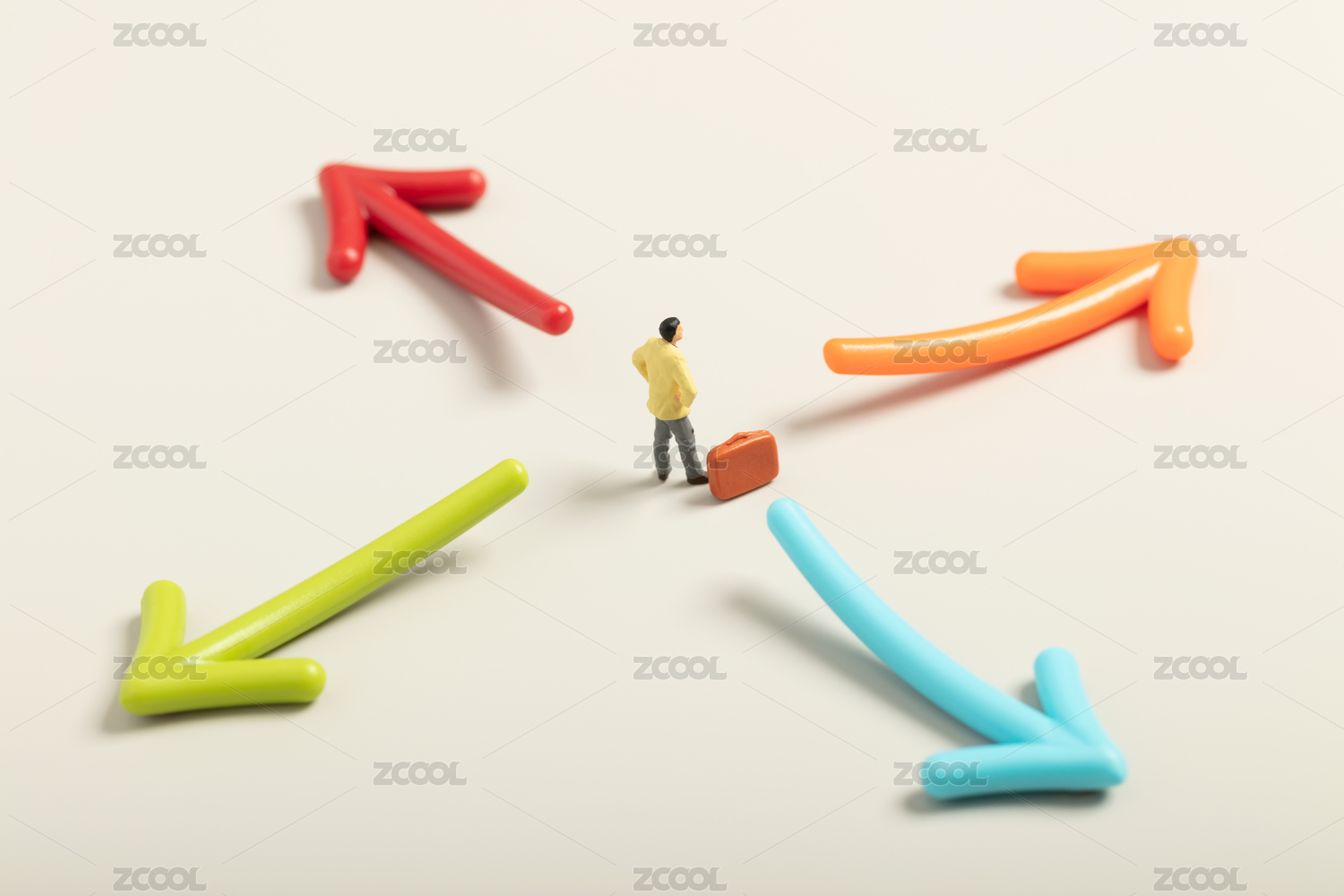 微缩创意在十字路口犹豫的中年男性