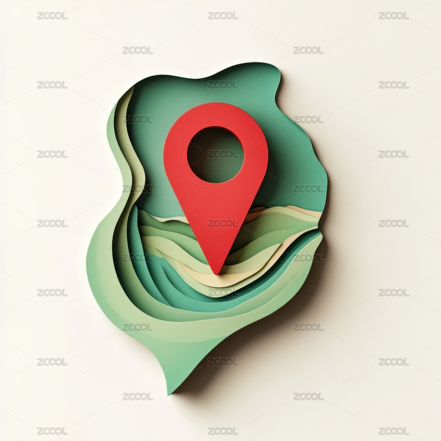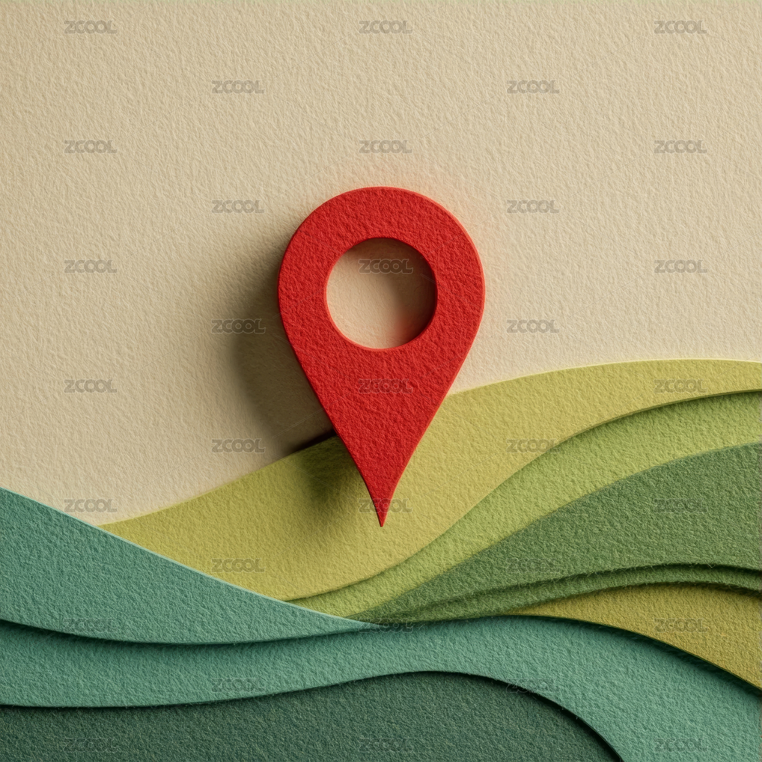 纸艺山丘上的红色地图定位图标