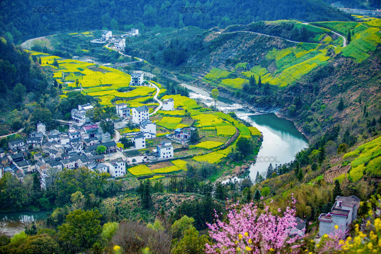安徽黄山歙县油菜花新安江自然风光