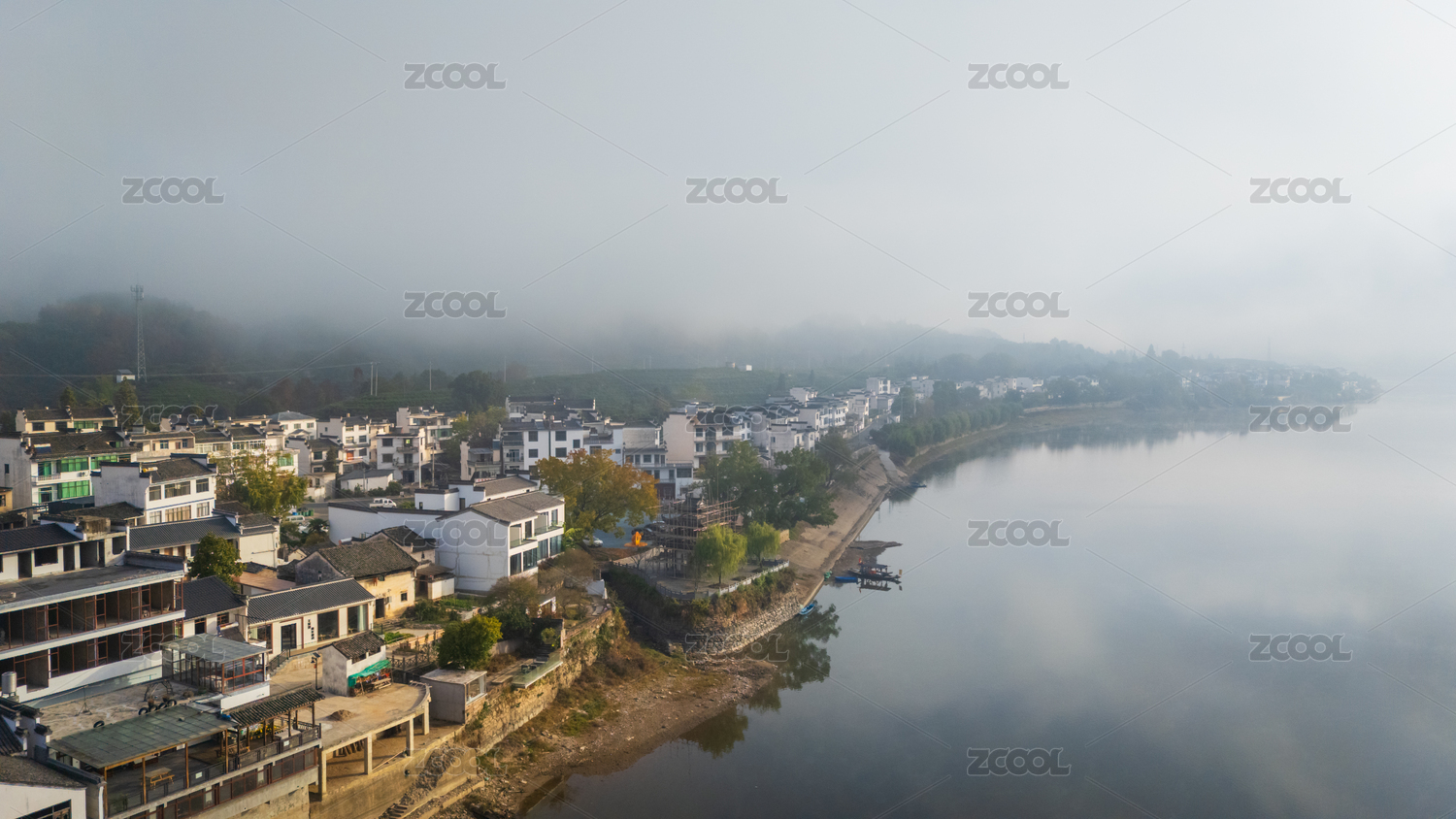 晨雾缭绕的歙县新安江十里画廊