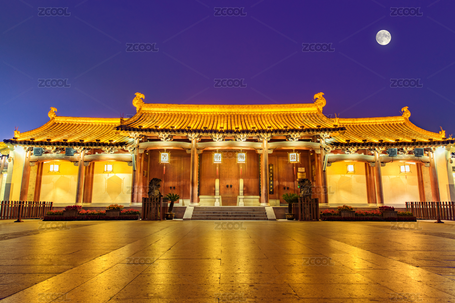 中国安徽黄山市歙县古城里的徽州府衙夜景
