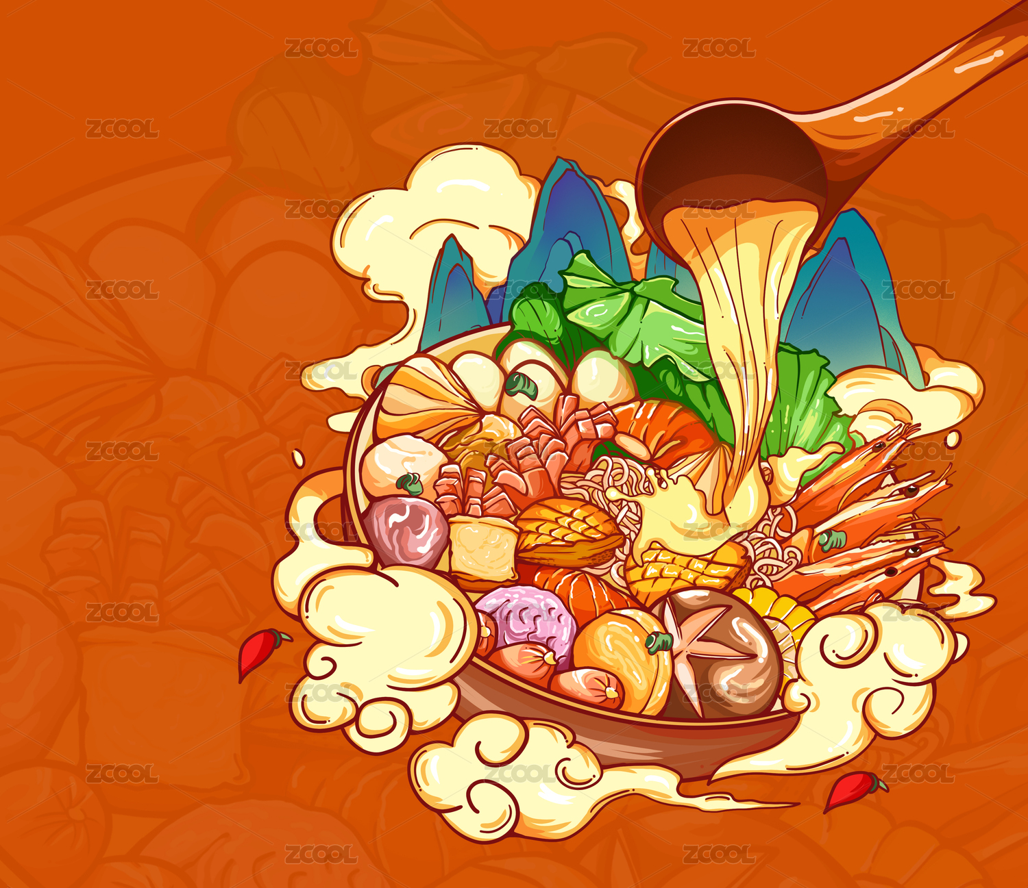 四川冒菜火锅国潮插画