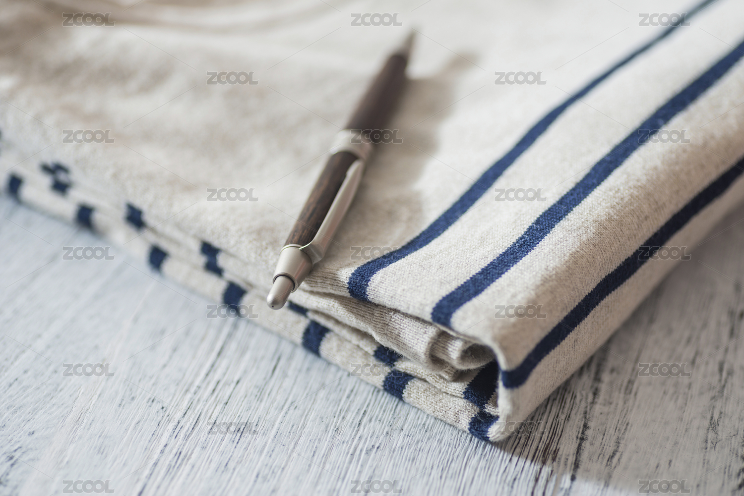 针织条纹T恤和一支自动铅笔