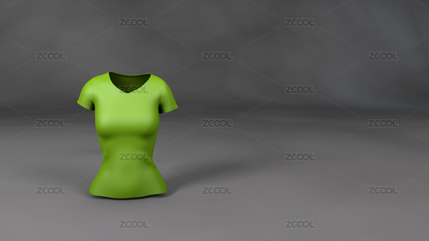 3D渲染的女款绿色T恤插图和深灰色的背景