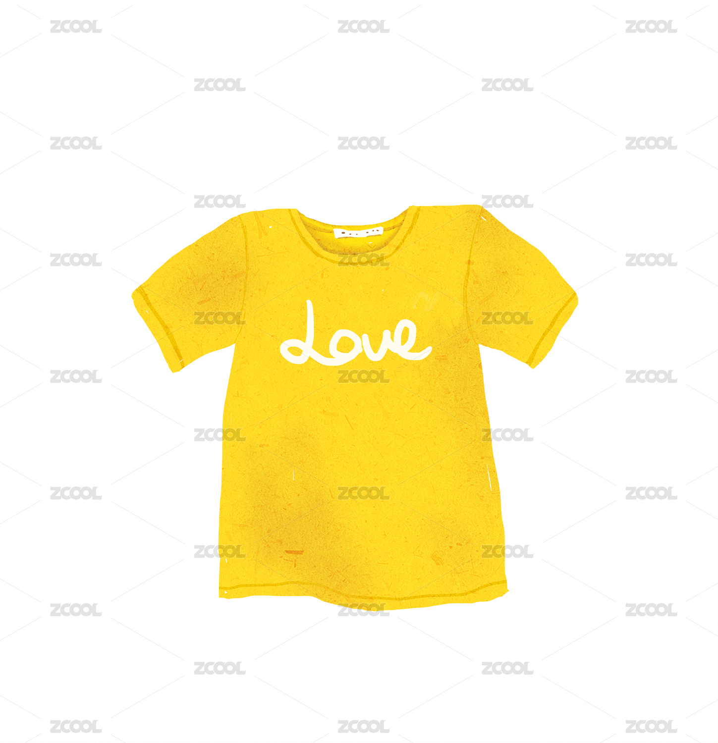 卡通插图黄色T恤上写着LOVE的短袖