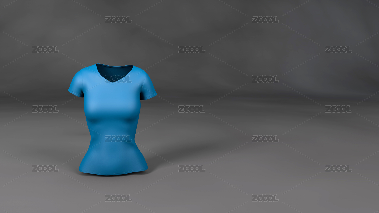 3D渲染的女款蓝色T恤插图和深灰色的背景
