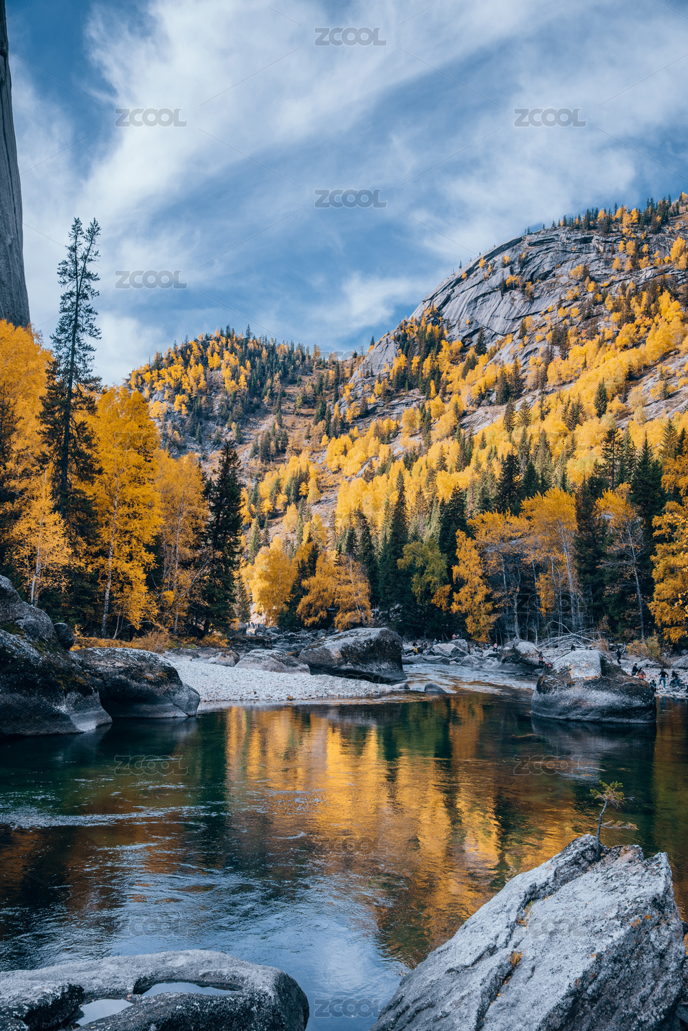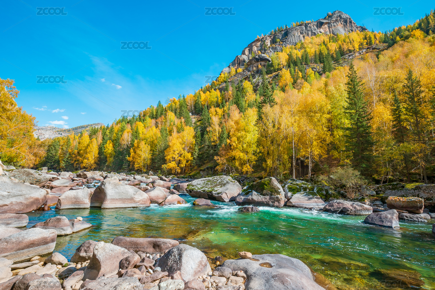 中国新疆阿勒泰富蕴县可可托海秋天森林自然