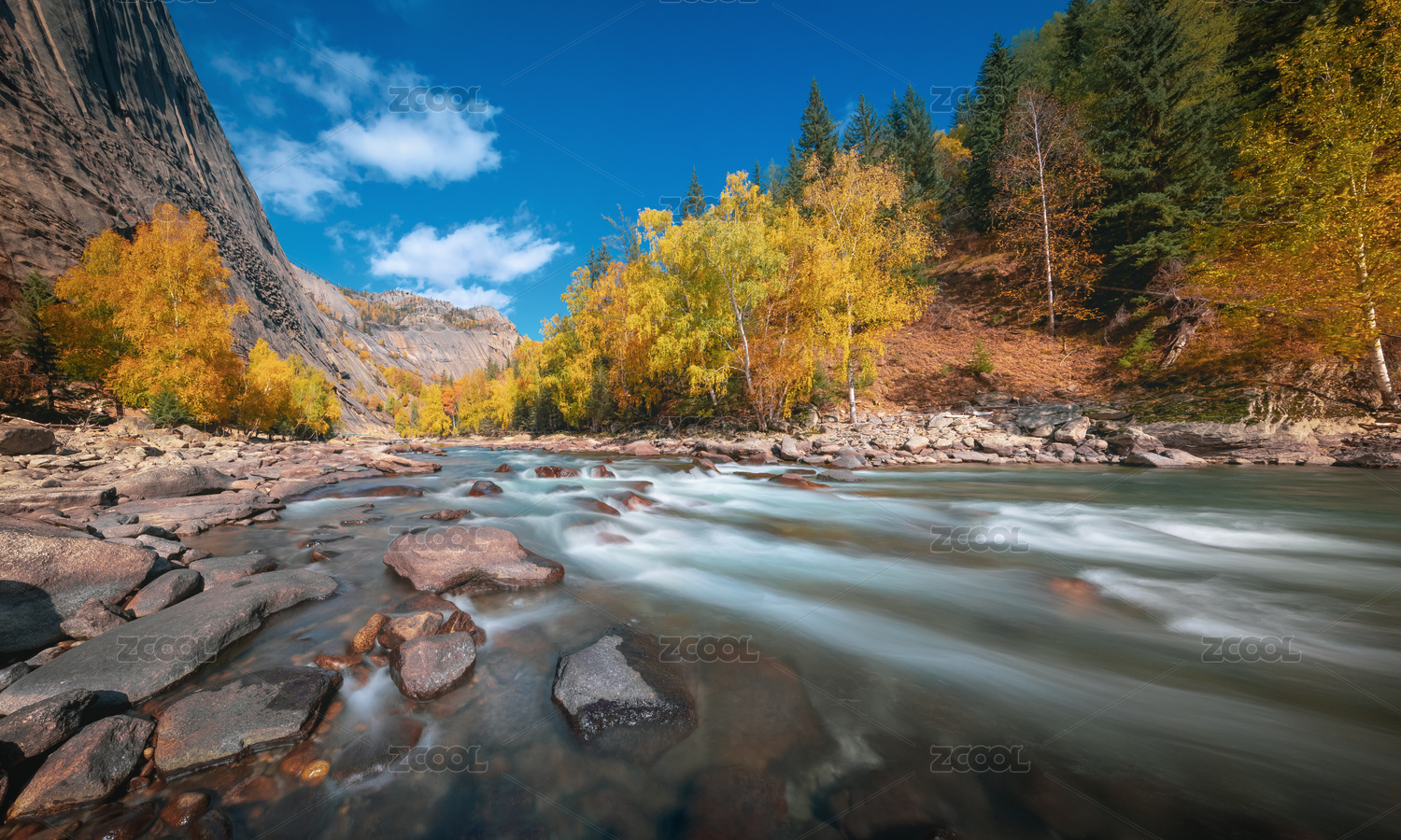 新疆阿勒泰富蕴县可可托海额尔齐斯峡谷河流