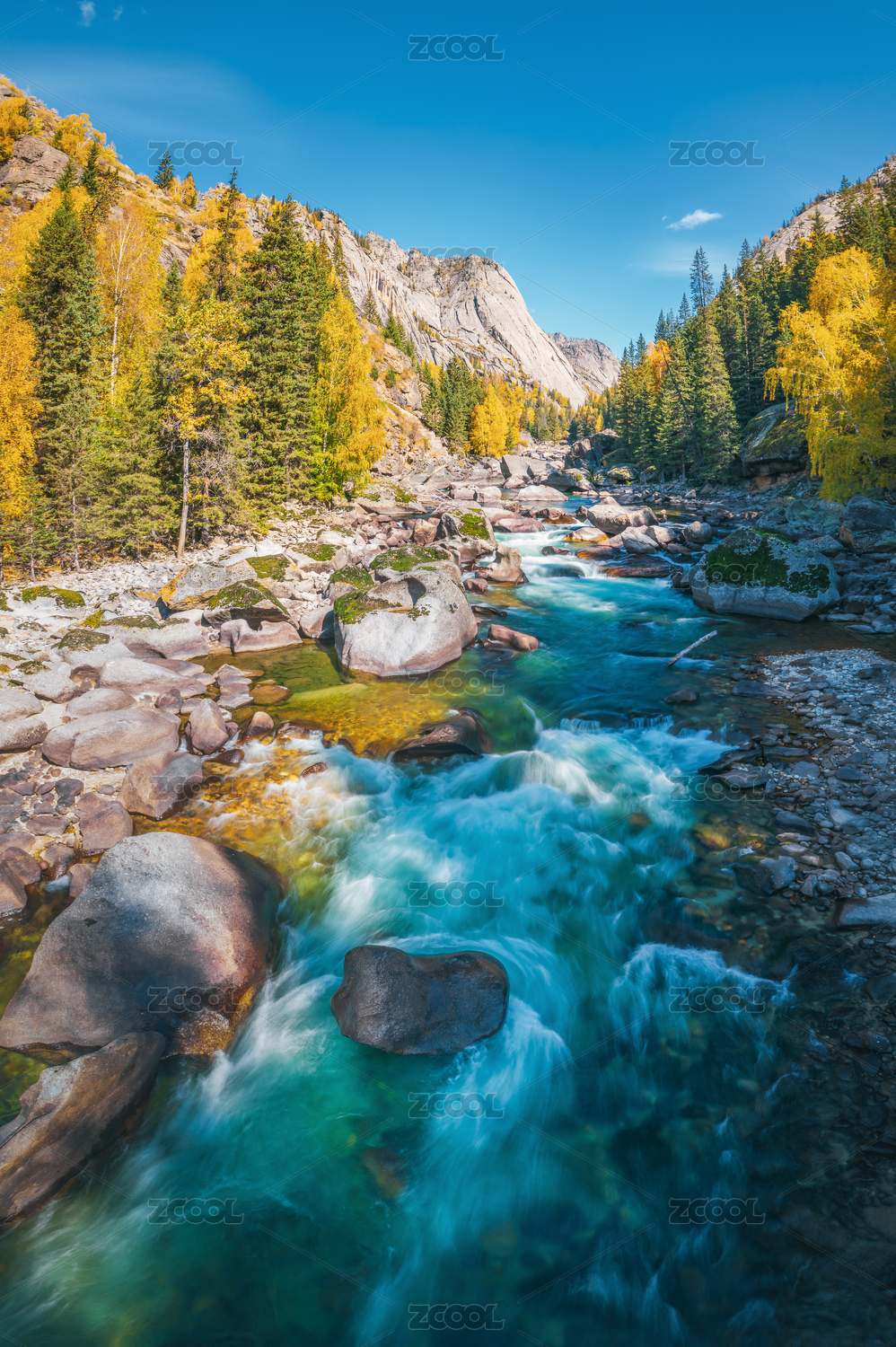 中国新疆阿勒泰可可托海额尔齐斯大峡谷溪流