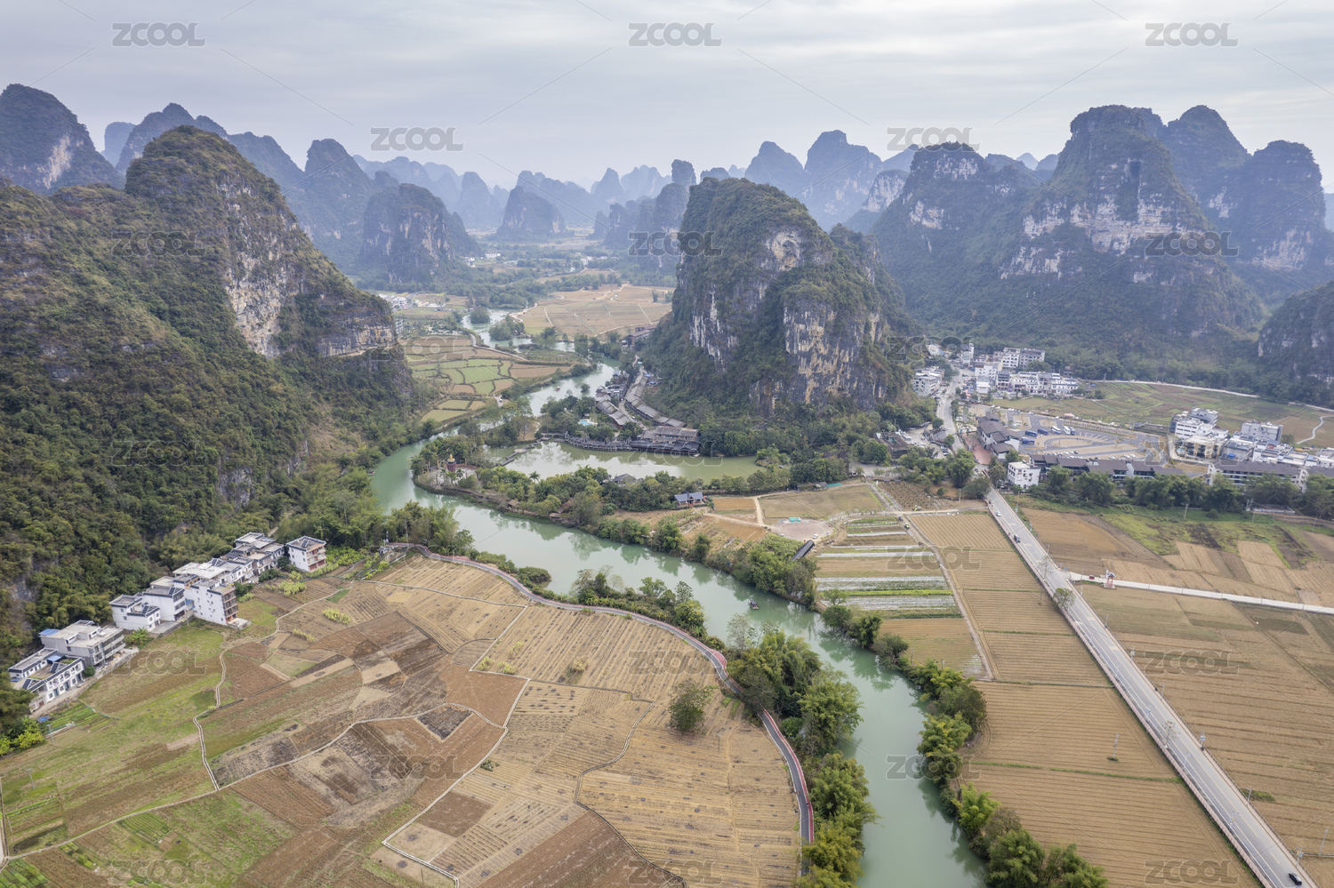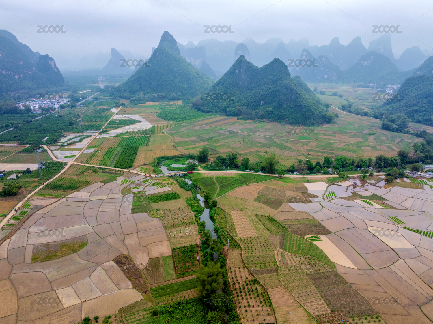 广西崇左航拍田园风光