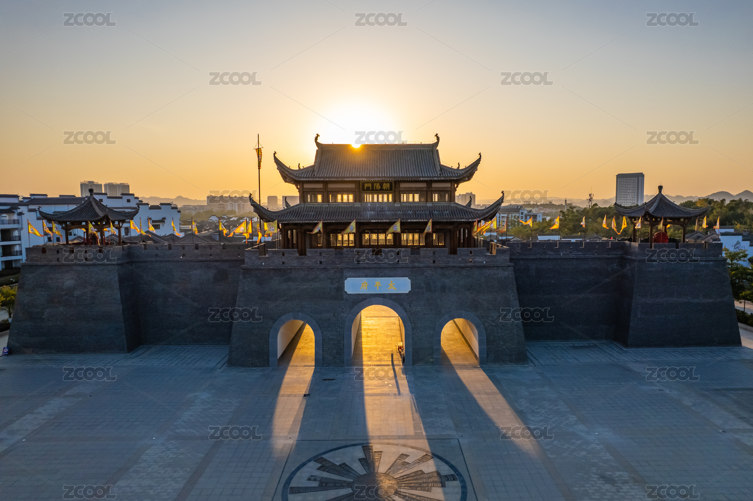 广西崇左太平古城夕阳落日建筑风光航拍
