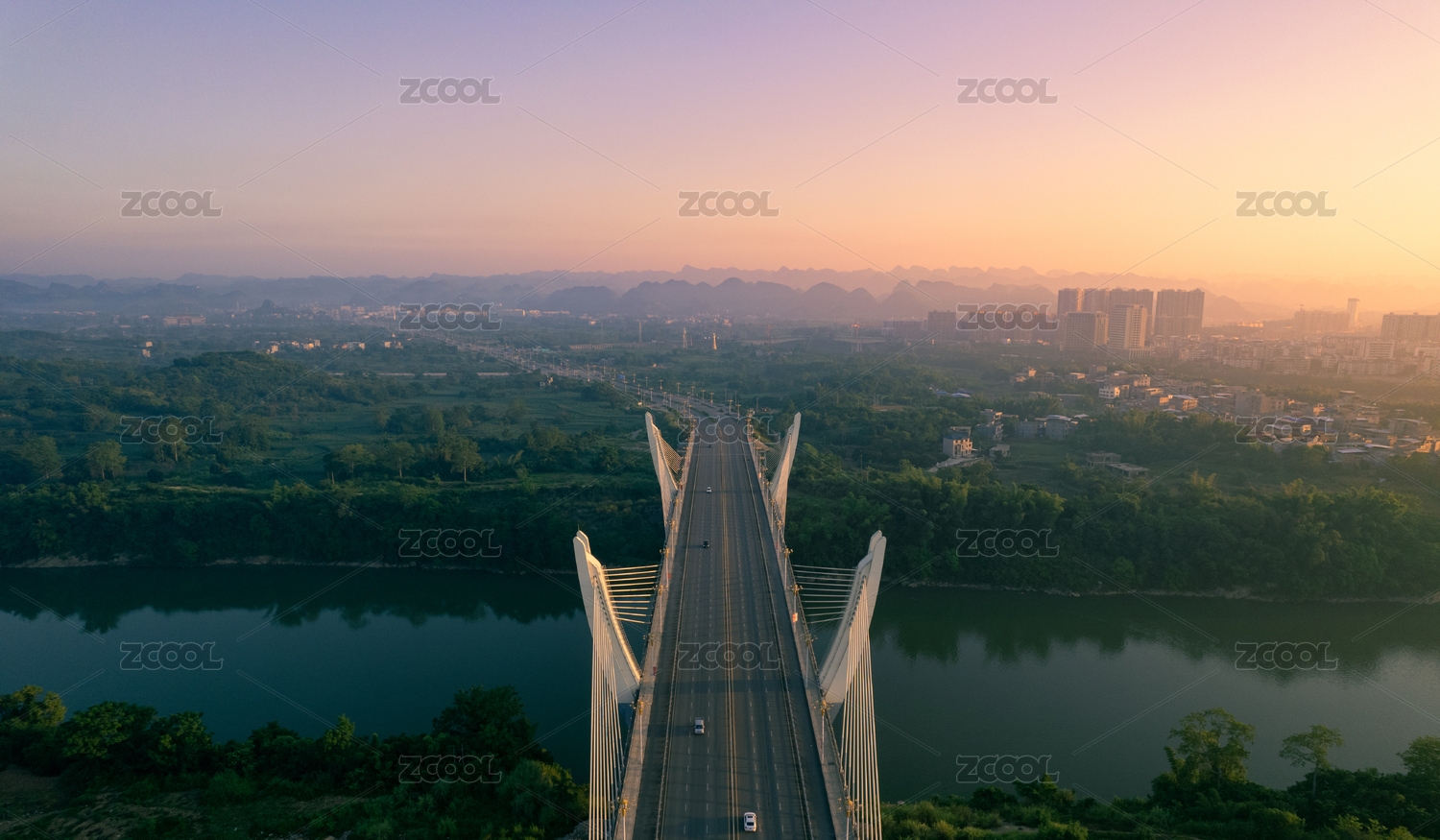 中国广西崇左市左江大桥航拍