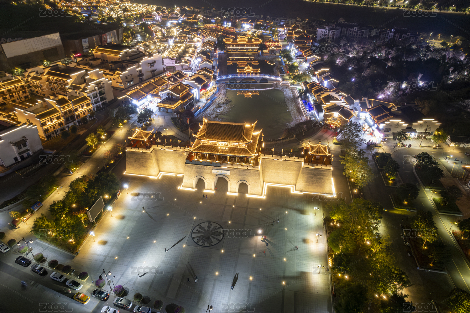 广西崇左太平古城航拍夜景