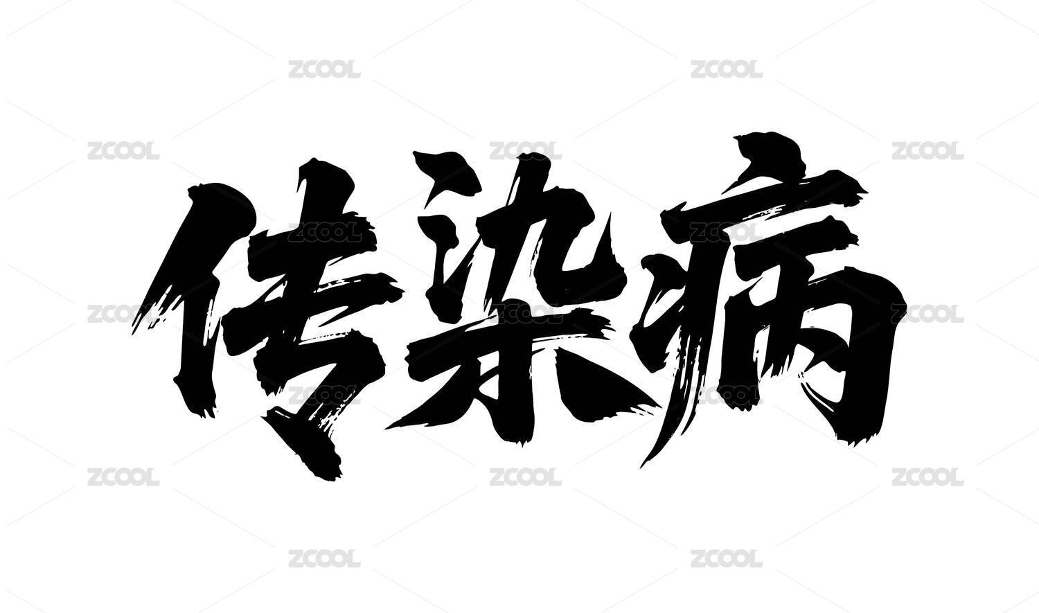 传染病矢量书法手写毛笔字