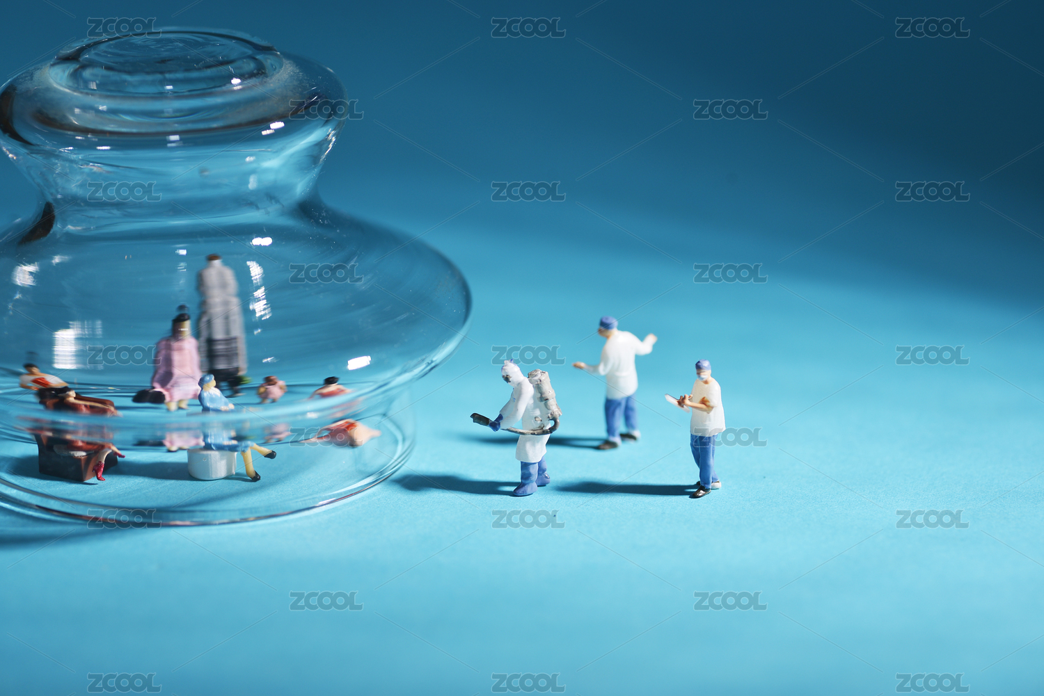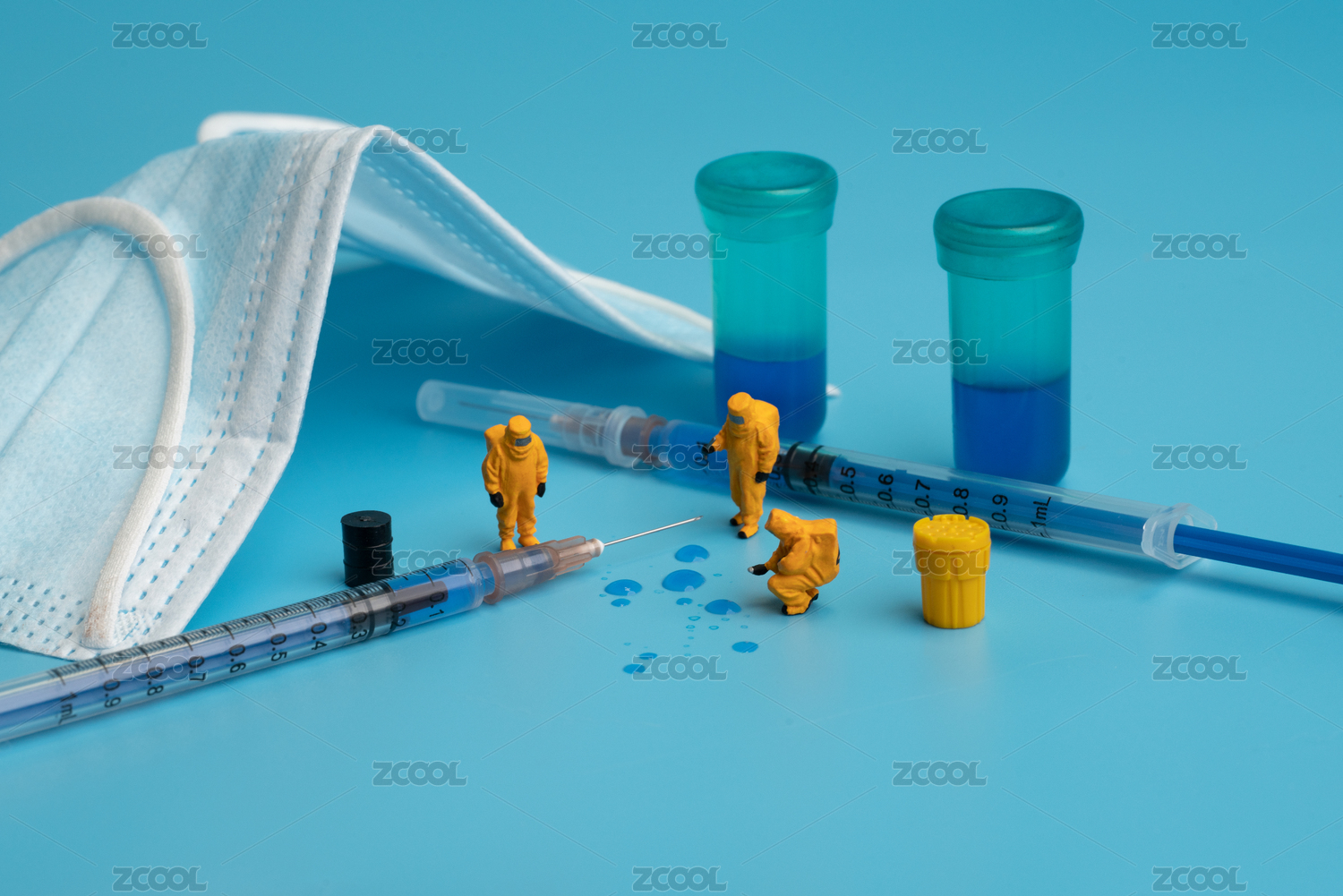 科研人员研究新冠疫情疫苗微缩创意图