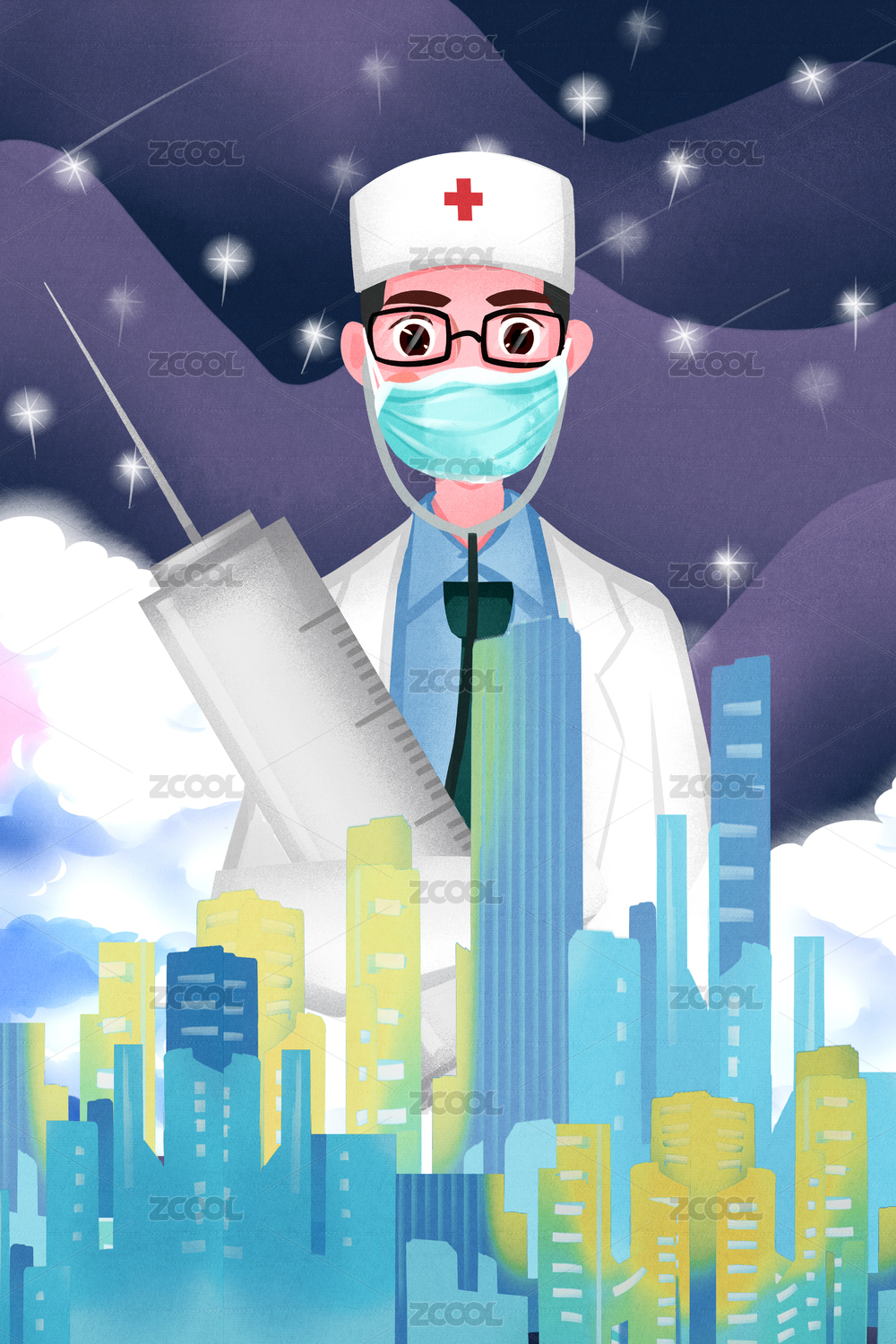 传染病医生守护城市插画