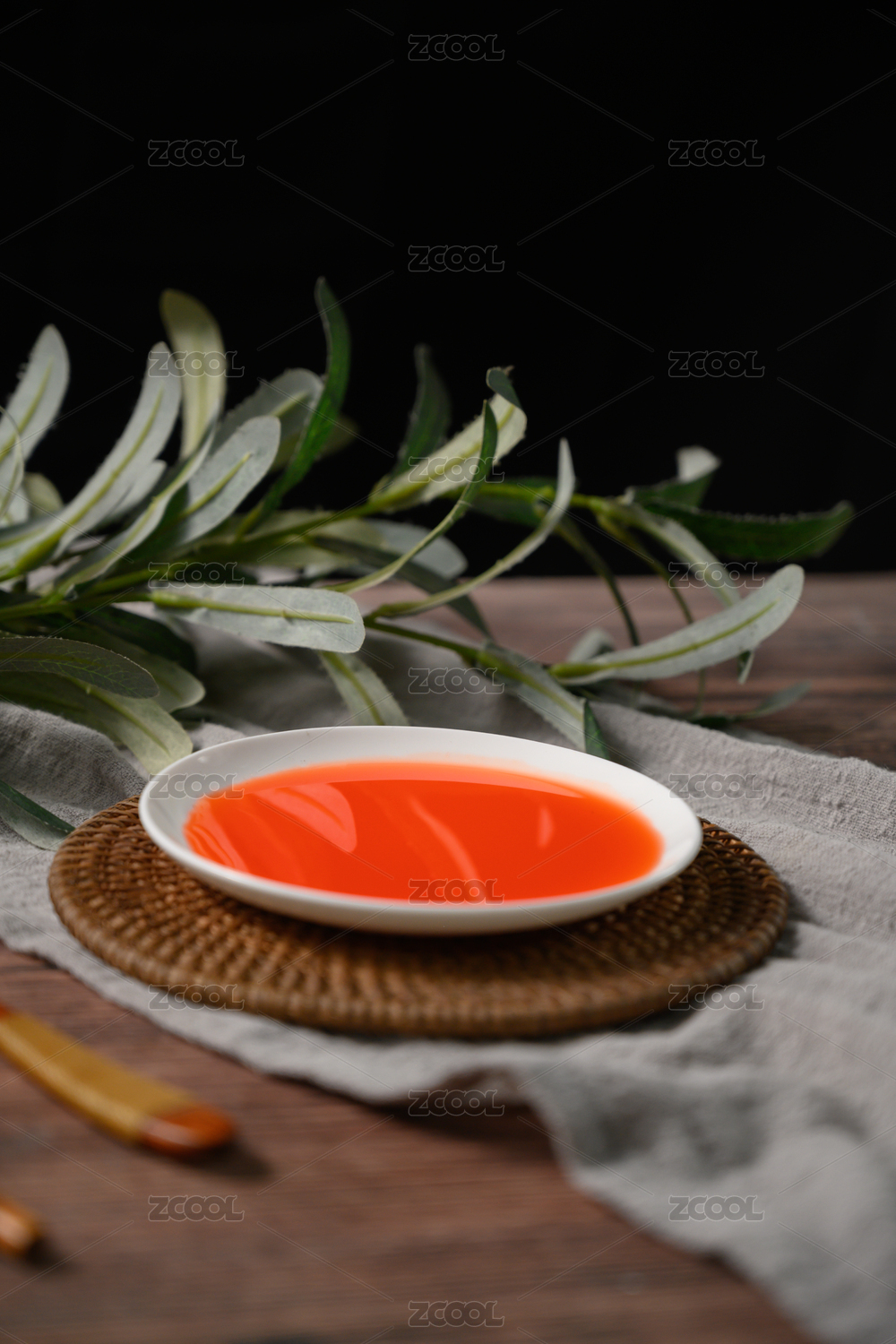 桌面上的盘子里的美味可口的西柚浓缩果汁