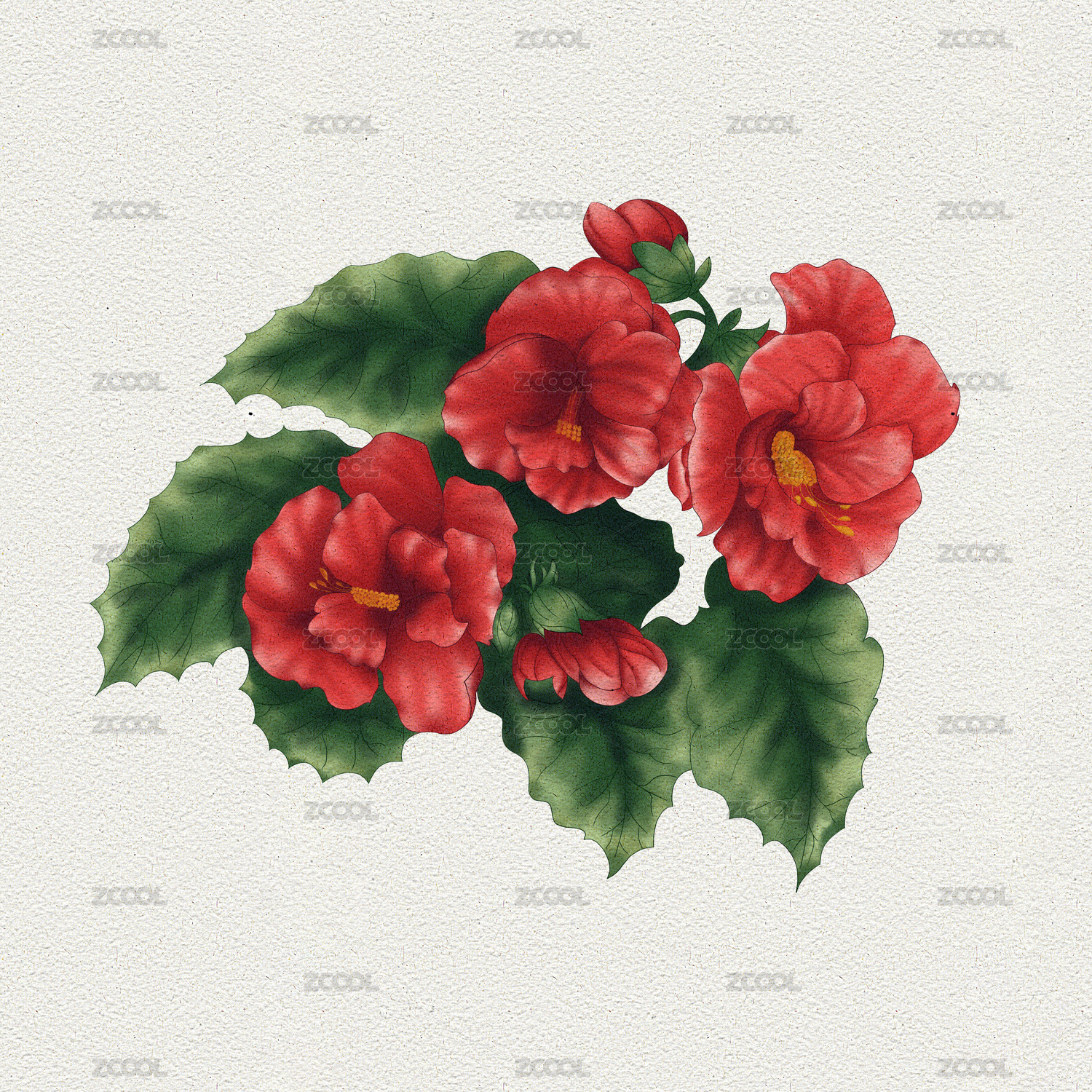 水彩画海棠花