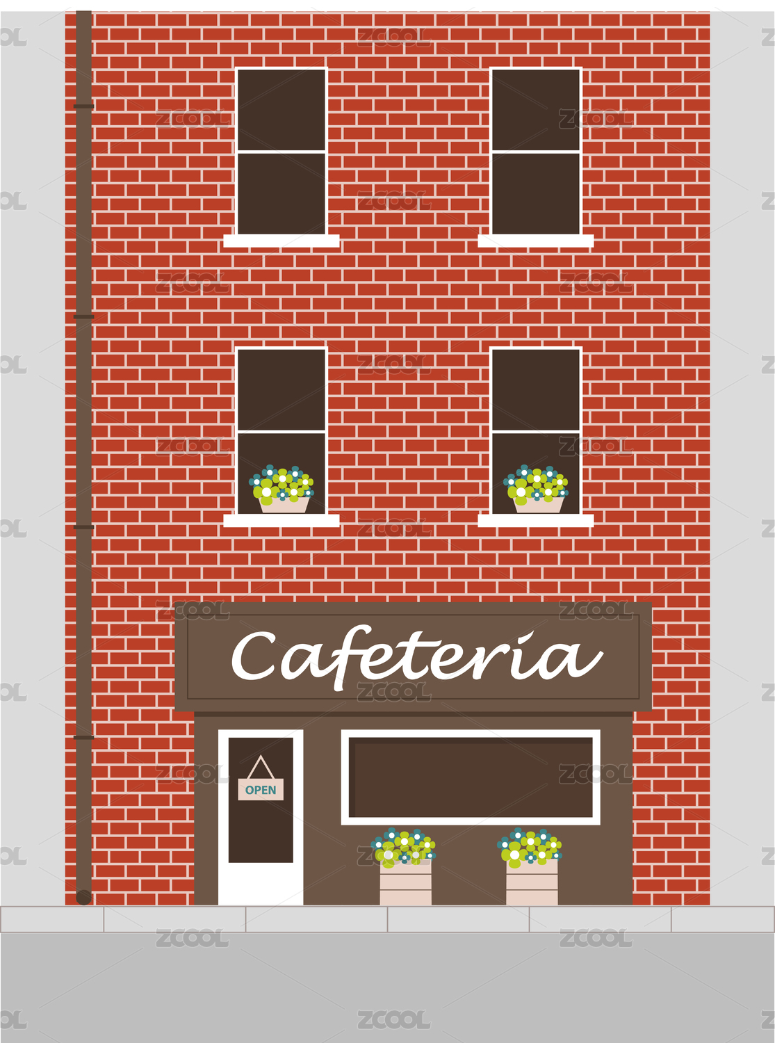 一间有绿植的咖啡店里,一个男孩在吧台前用心制作着咖啡,简约概念插画。