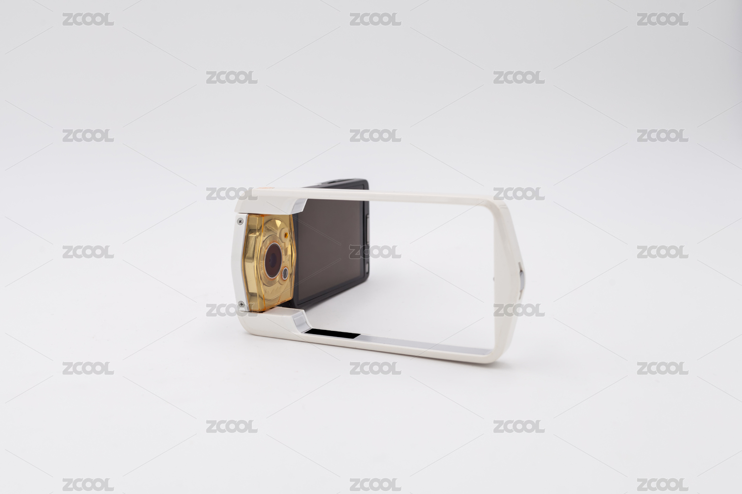 美丽的亚洲女孩的数码相机拍摄的微笑,户外旅行