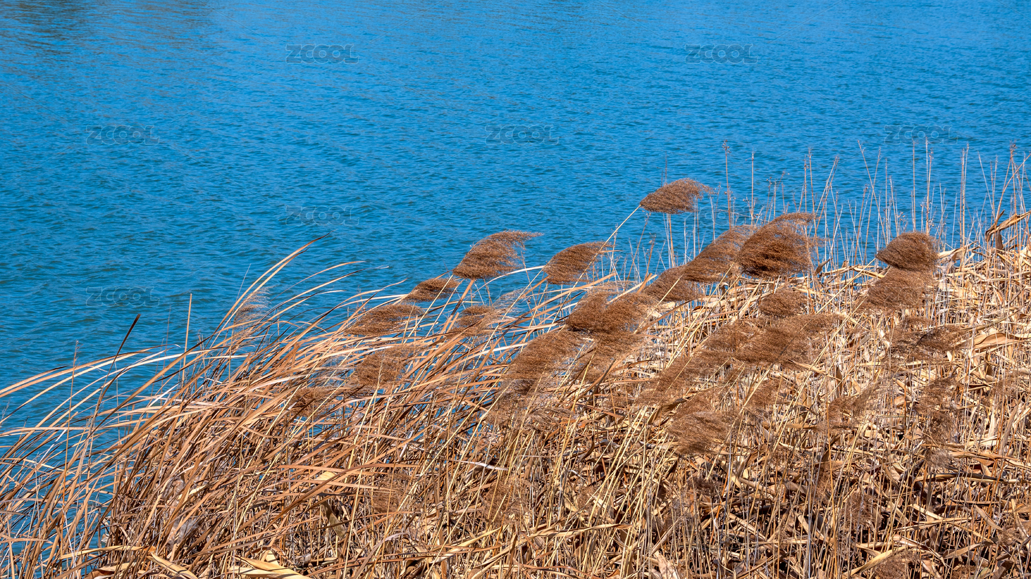 秋天中国辽宁沈阳中央公园的九岛湖芦苇丛