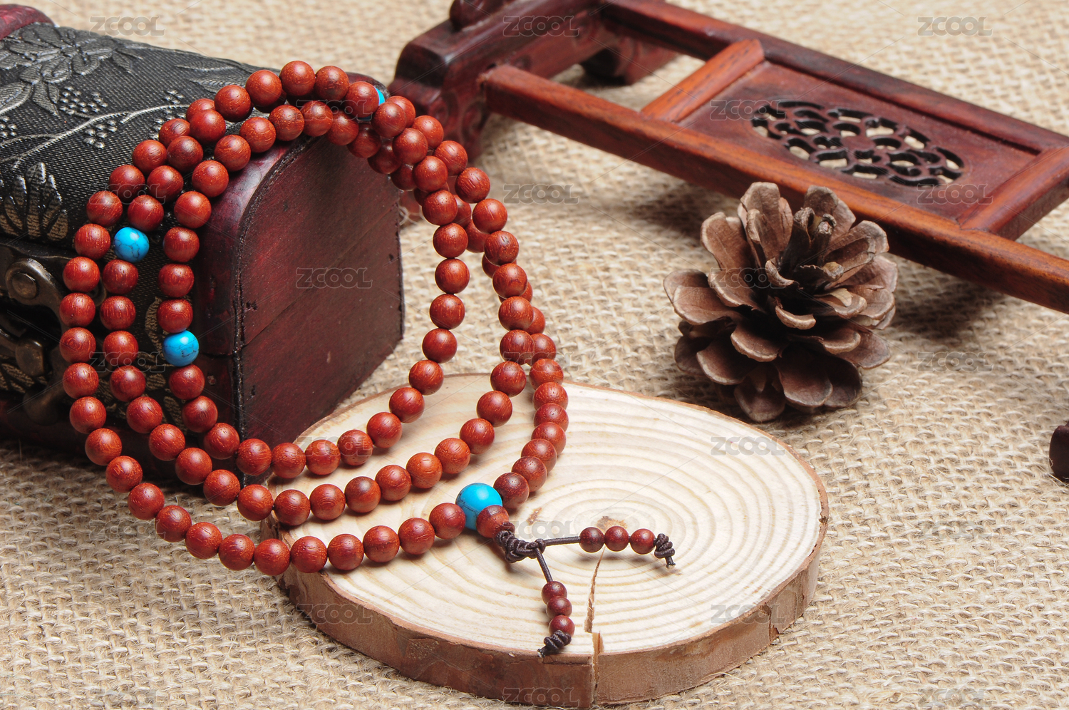 红色硬壳上的一串小叶紫檀