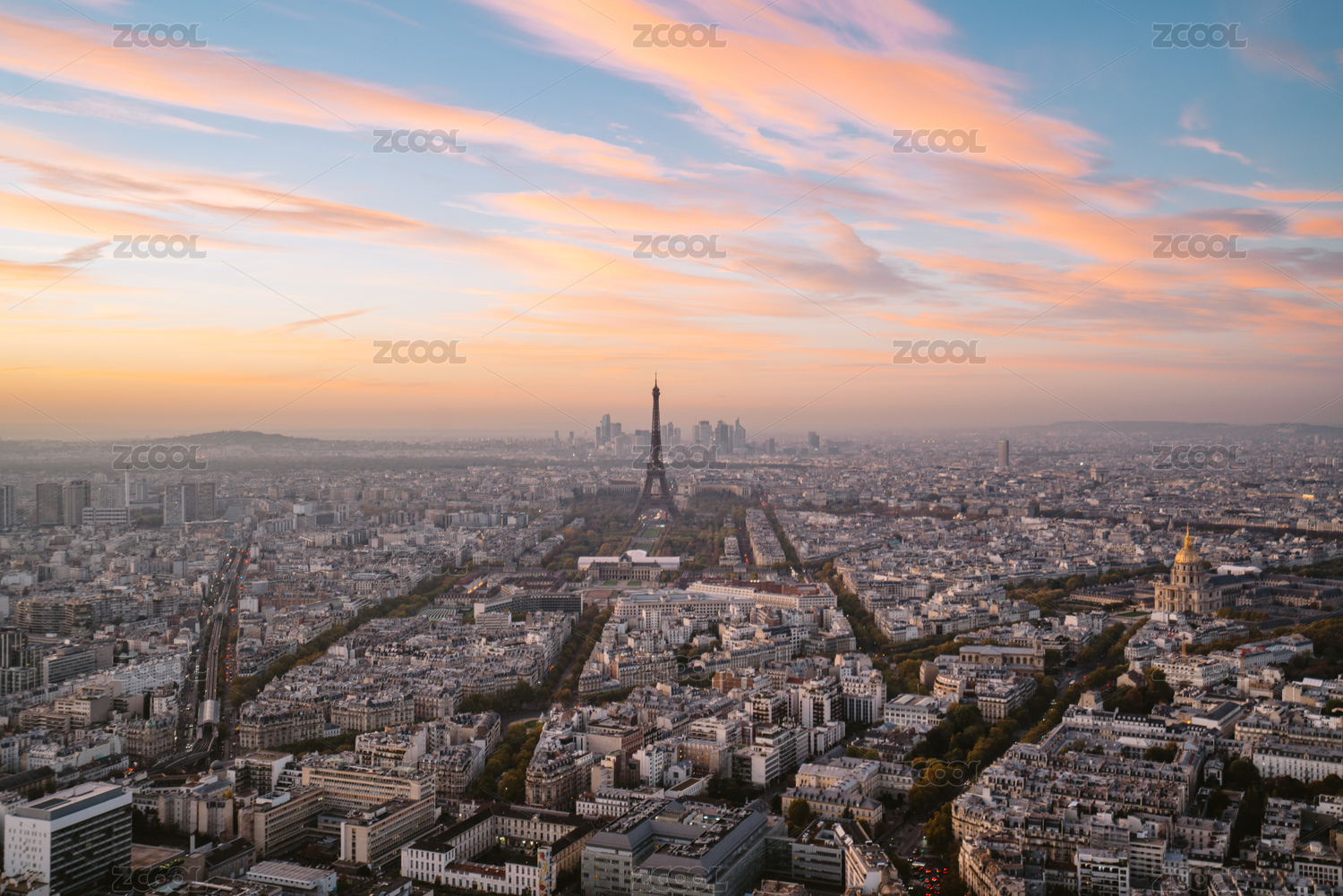 航拍黄昏的法国巴黎城市天际线全景风光