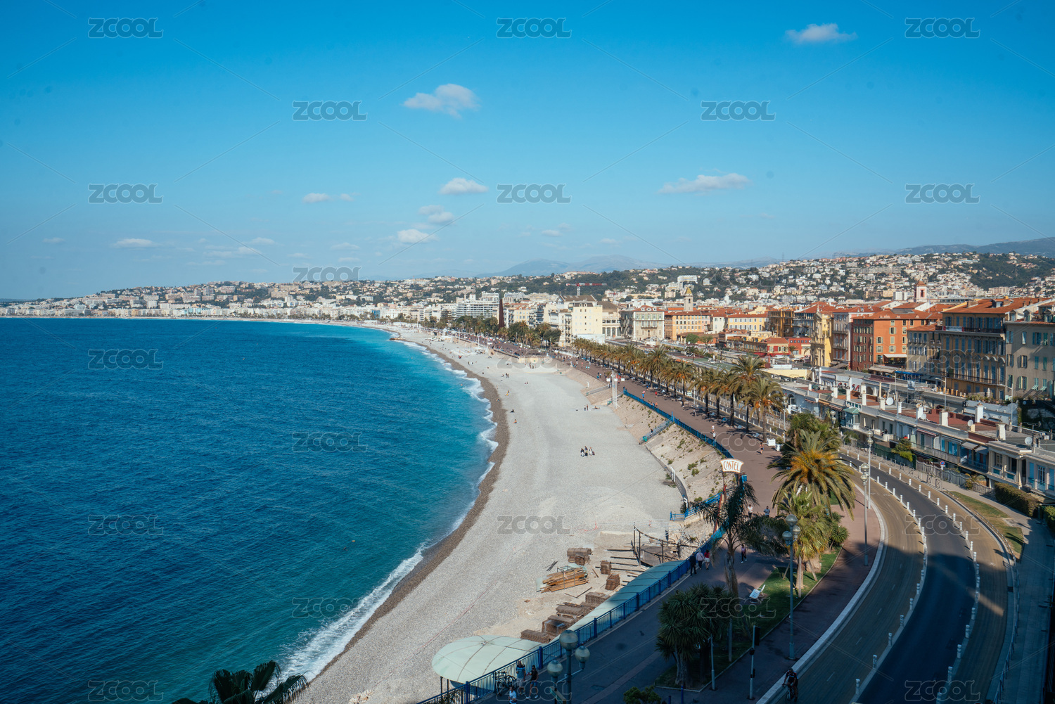美丽的法国尼斯天使湾与城市天际线风光