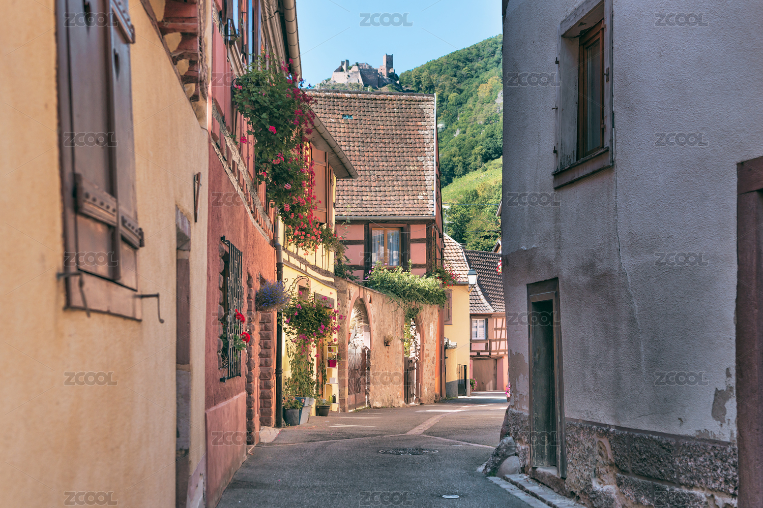 欧洲法国传统鲜花小镇街景建筑