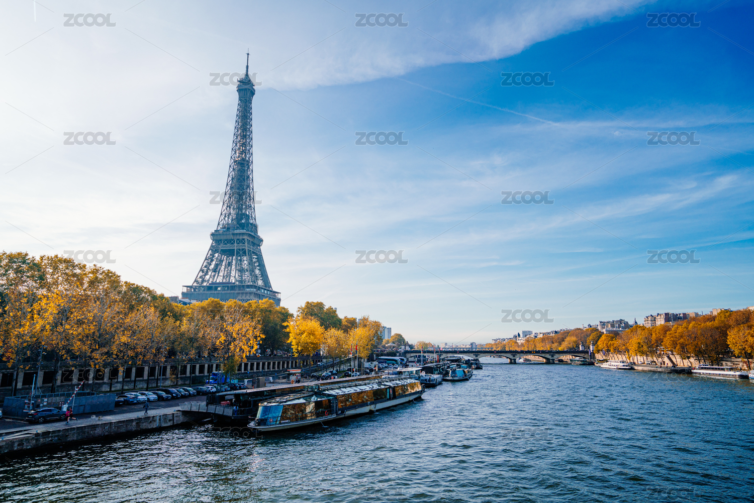 美丽的法国巴黎埃菲尔铁塔与塞纳河自然风光