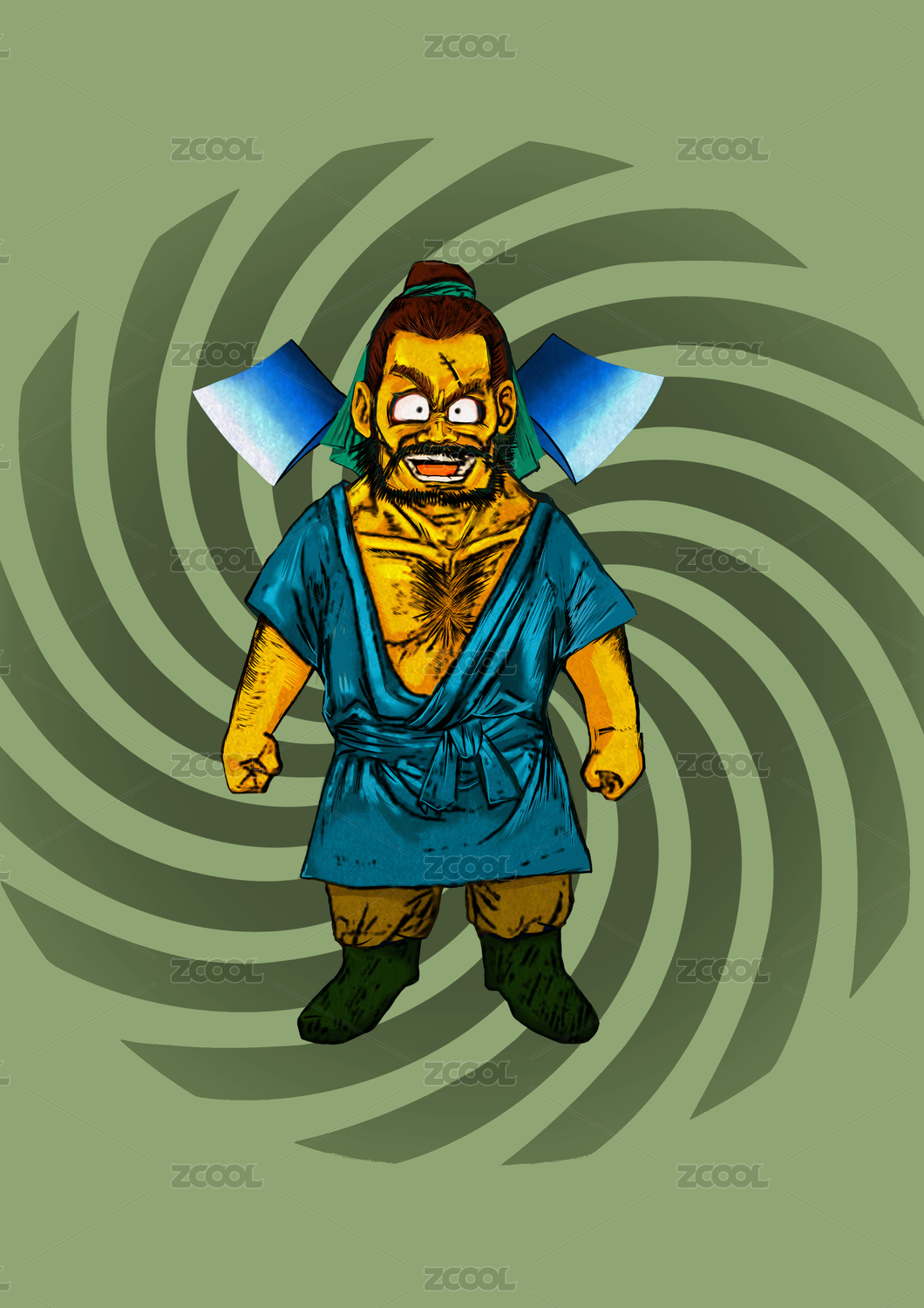 梁山好汉黑旋风李逵站立微笑卡通版